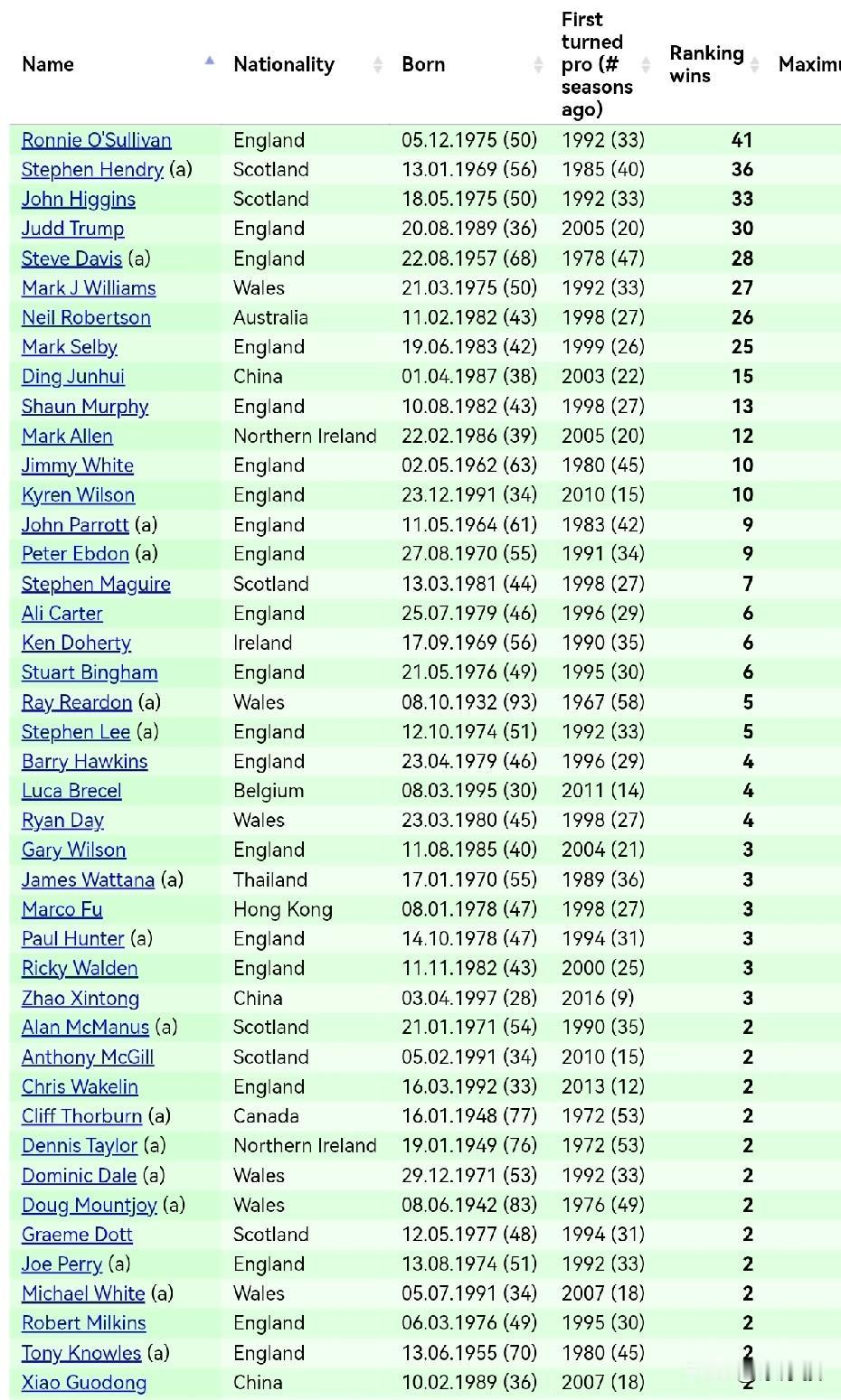 中国斯诺克运动越来越受重视,中国球员要珍惜机会。 据甘肃体育报道,新科国锦赛冠军吴宜泽刚刚受到甘肃省副省长的接见,甘肃的一家体育集团还奖励吴宜泽10万元人民币。奖励不是最重要的,重要的是表明地方政府重视斯诺克运动的态度。 另外,最近多个城市举办斯诺克大师邀请赛,推广斯诺克运动,其中包括刚刚结束的苏州斯诺克大师邀请赛、今晚开杆的拉萨跨年斯诺克高原挑战赛,以及2026年1月2-4日进行的青岛斯诺克巨星邀请赛。 据报道,拉萨斯诺克高原挑战赛今天晚上进行,肖国栋、吴宜泽、凯伦·威尔逊和马克·威廉姆斯出战。 相关部门越来越重视斯诺克运动,因此中国球员要倍加珍惜机会,争取更好的成绩。 近年来,中国职业球员获得排名赛冠军的人次在增加,比如赵心童、张安达、肖国栋、吴宜泽、雷佩凡,比之前丁俊晖一枝独秀的局面有了很大的改观,但翻开斯诺克排名赛冠军榜单,中国球员获冠军的还是太少。除了丁俊晖拿到15个排名赛冠军外,就是傅家俊、赵心童的3个、肖国栋的2个,其余球员范争一、吴宜泽、张安达、雷佩凡、颜丙涛、梁文博只有一个排名赛冠军。 这个成绩不要说跟七五三杰,就是与八零五虎比,差距也比较明显,因此中国球员还要更加努力,争取多拿排名赛冠军。 中国职业斯诺克球员人数仅次于英国,但拔尖的、表现稳定的球员不多,好在一些年轻球员正在成长中,假以时日,定会带来惊喜。 一句话,中国斯诺克运动任重道远。