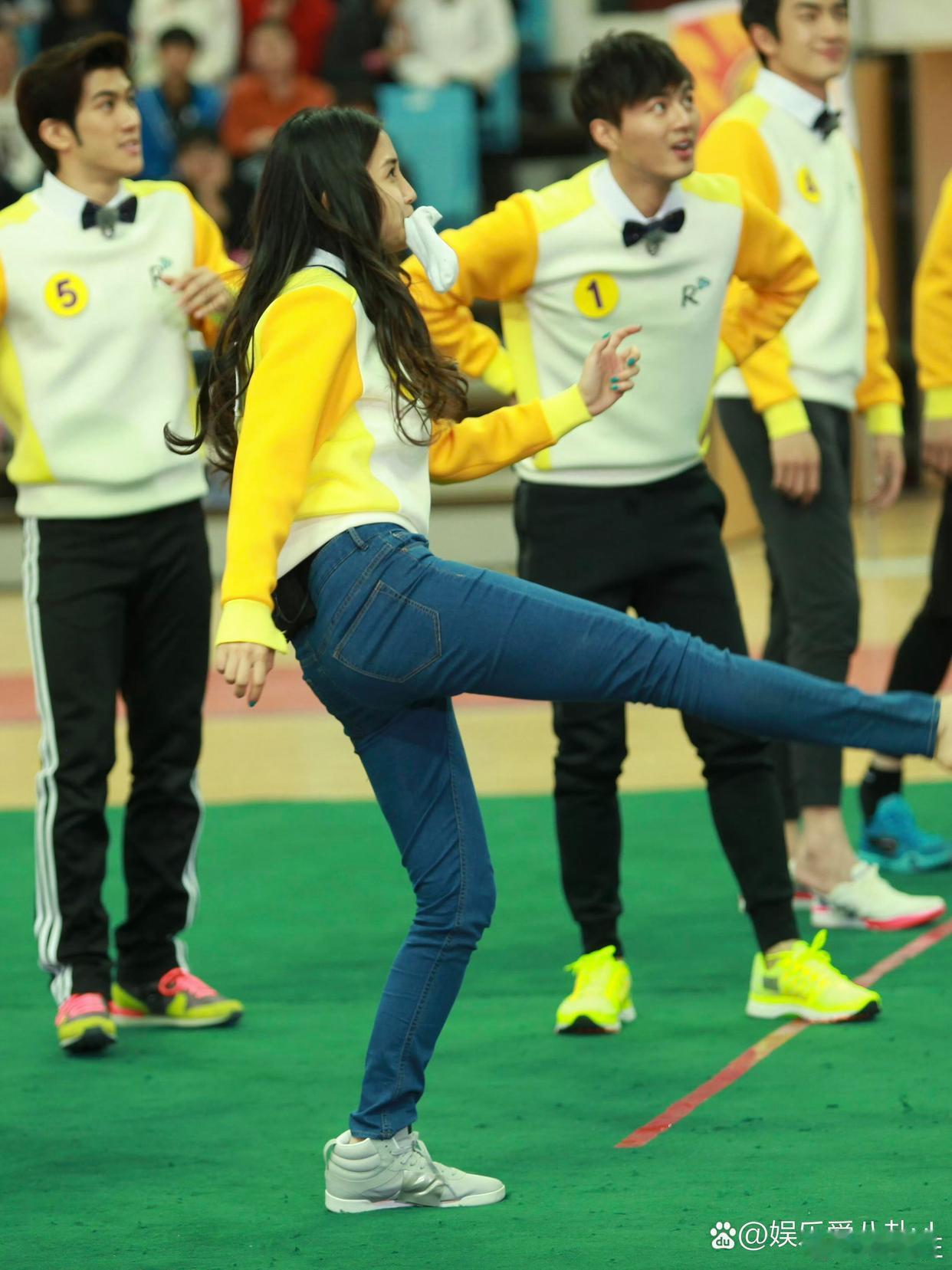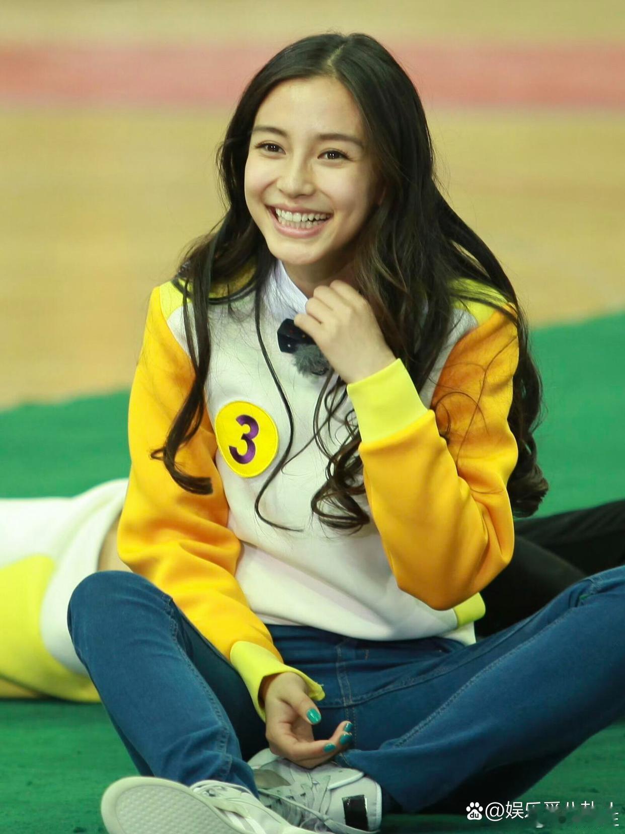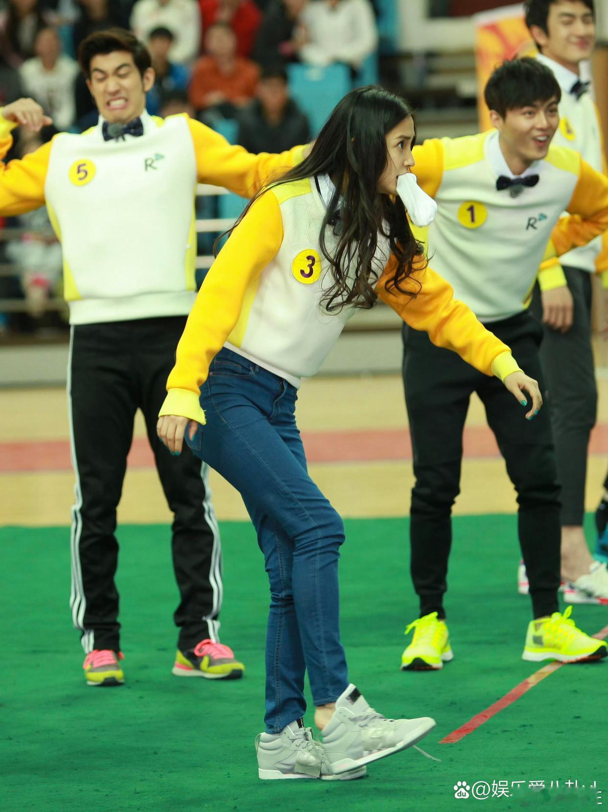 这一张跑男大合照,感觉Angelababy像单独开了美颜,真的太美了吧,这张脸确