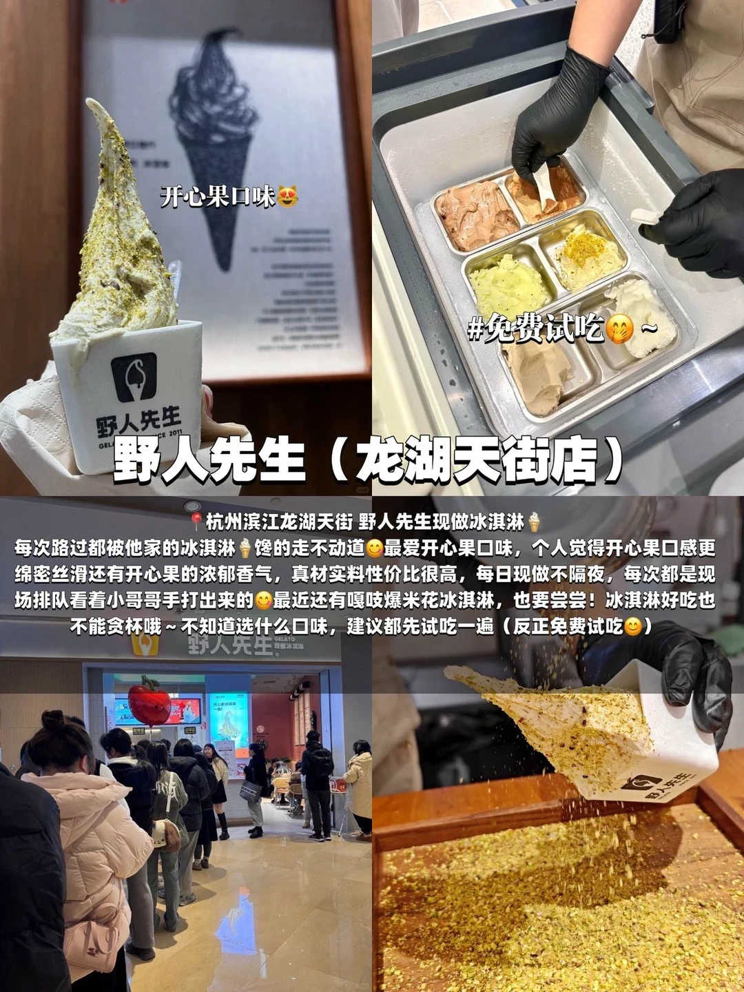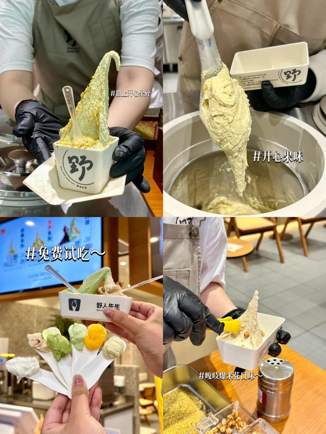 现做冰淇淋(推荐开心果味),可以先免费试吃再挑自己喜欢的口味~