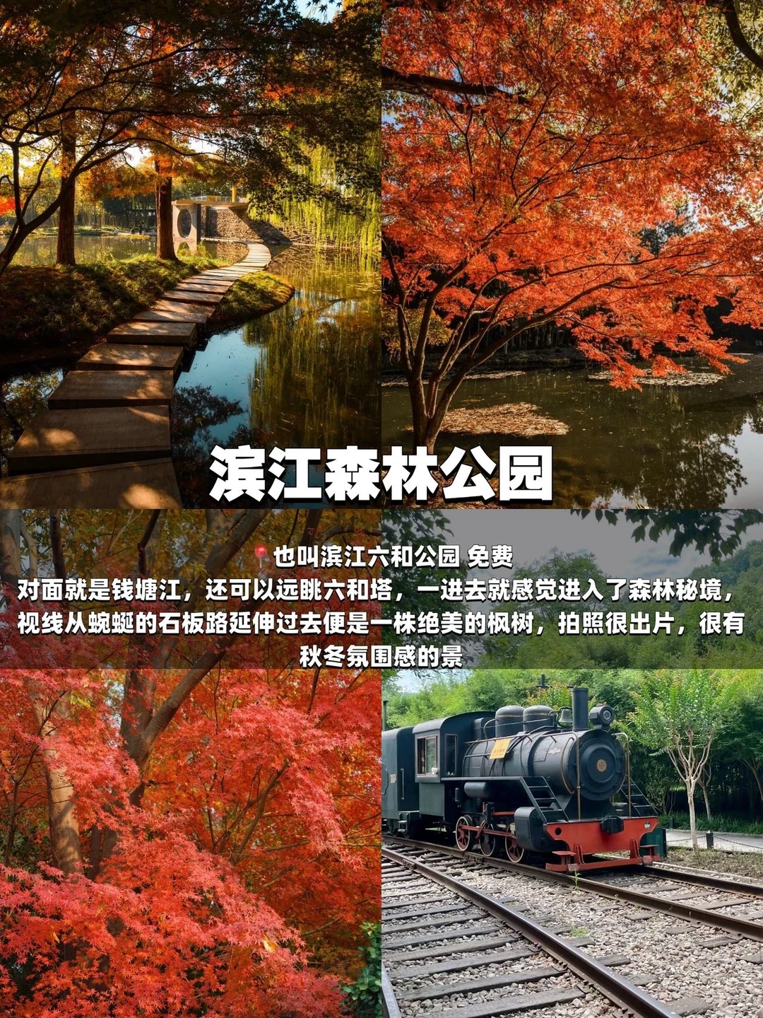 逛森林秘境,看红枫、拍复古火车轨道,远眺钱塘江与六和塔,秋冬氛围感拉满。