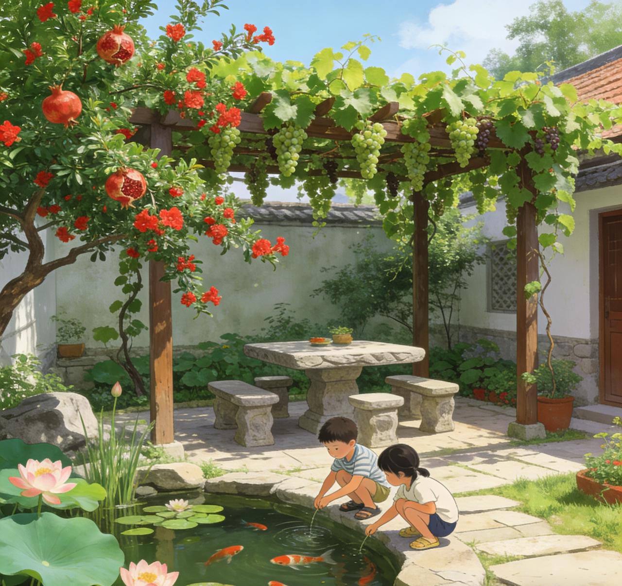 微型小说 小院晨昏 晨光刚漫过院墙的青瓦,葡萄架下的太极招式就带起了风。云逸夫君领着孩子们抬手、转腰,一招一式都透着舒展,我倚在厨房门框上看,手里的小米粥咕嘟咕嘟冒着泡,花卷的香气缠上了晨风。 早饭摆在石桌上,青瓷碗盛着白粥,碟子里是酱菜和蒸蛋。我教孩子们背“春眠不觉晓”,脆生生的童音落进院子里;夫君趁机插一句:“你看春眠是休整,就像股票盘整,等着后续发力呢。”孩子们听得歪头晃脑,把诗词和K线都嚼进了早饭里。 上午的时光,一半在北墙的小木屋里。我教孩子握笔临帖,墨香混着窗外的月季香飘进来;夫君坐在对面翻研报,偶尔伸手替孩子扶正笔杆,指尖沾着淡淡的墨痕。等练字的纸积了一叠,他就拉着孩子蹲在花圃边,指着长势旺的兰草说:“这就像绩优股,根基稳,后劲足。”我在一旁笑,捡了两句“兰生幽谷,不为莫服而不芳”教给孩子,让草木和道理,都住进他们心里。 午后的暑气被葡萄叶筛得细碎,藤椅上的蝉鸣一声高过一声。孩子们趴在夫君腿上,听他讲当年投资的小故事,我端来冰镇的酸梅汤,瓷碗碰着石桌,叮当作响。醒盹后的时光最是悠闲,孩子们拎着小水壶去浇花,锦鲤在池子里摆尾,溅起的水花沾湿了他们的衣角。 傍晚的风带着荷香,我们领着孩子摘豌豆尖、采莲蓬。夫君教他们分辨哪些菜能摘,哪些还得养,说这是“看基本面”;我教他们吟“采菊东篱下,悠然见南山”,让晚风把诗句吹得悠悠扬扬。菜篮里的绿意越堆越满,孩子们的笑声也越飘越远。 晚饭的灯火亮起来时,院子里的虫鸣就成了背景音。饭桌上的清炒秋葵、莲子羹,都是院子里长出来的滋味。孩子们抢着说今天学会的字、认的K线,夫君抿着酒笑,我替他添一筷子菜。 烛火摇曳的夜里,夫君教孩子看晚间的财经简讯,我陪着读睡前的小故事。最后,全家一起念一句“红烛帐暖,岁岁同心”,月光漫过葡萄架,落在满院的安宁里。 【春】青瓦映新绿,香椿拌豆腐里藏着整个春天的鲜。孩子背“春眠不觉晓”,夫君说这是“盘整蓄力”,原来草木和日子,都在悄悄拔尖。小院慢生活 亲子时光 【夏】葡萄架下酸梅汤凉,荷花池里锦鲤忙。摘一串现熟的甜,剥几颗嫩莲子,看孩子们追着风跑,日子就该这么有滋有味。夏日小院 人间烟火 【秋】石榴咧嘴笑,烤红薯的香飘满院。摘把秋葵炒鲜,晒串萝卜干藏冬味,全家围炉夜话,连K线都染上了丰收的红。秋日私语 小院丰收季 【冬】雪落青瓦静,暖炉上羊肉汤咕嘟。蒸屉里豆沙包冒热气,腊肉香混着茶香,围坐灯下读诗看报,这就是岁岁同心的模样。冬日暖居