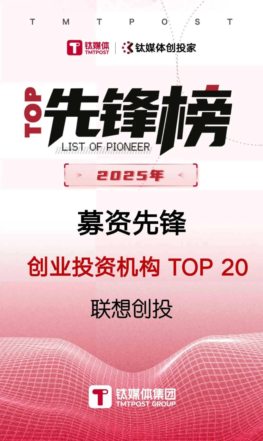 12月31日,钛媒体正式发布2025年度先锋榜,联想创投凭借在硬科技赛道的深度布局、全周期的投募管退卓越能力及对产业创新的持续赋能,一举斩获9项荣誉,为2025年征程圆满收官。