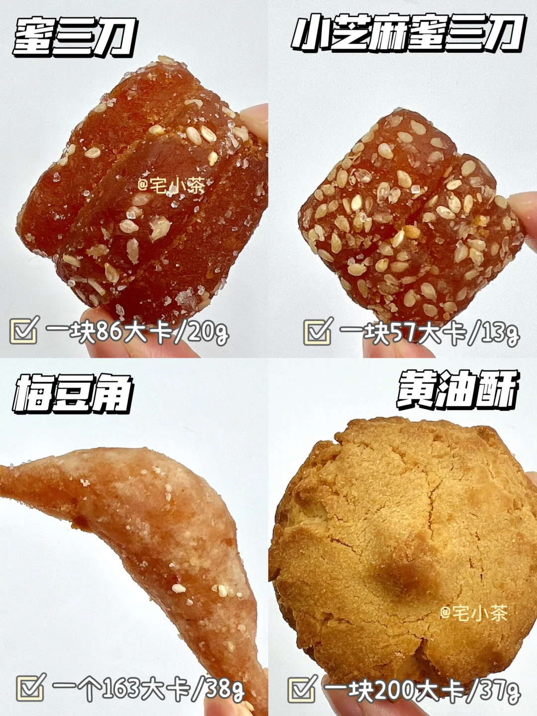 ➡️芝麻蜜三刀(小):一块57大卡