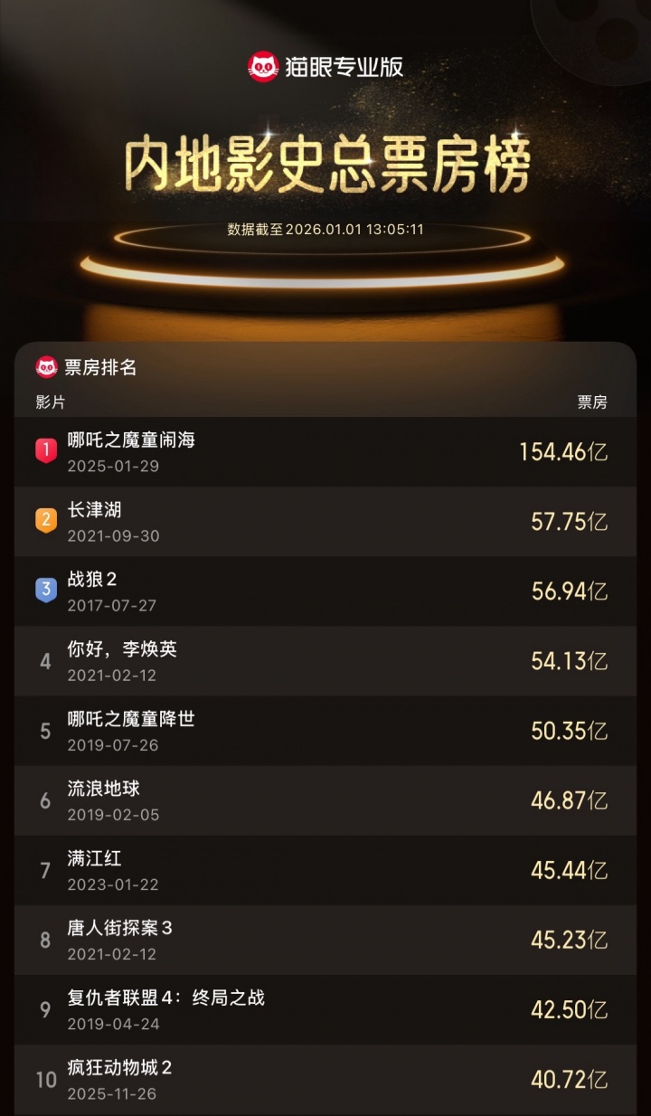 2025全年动画电影票房突破250亿,成为中国影史动画电影票房最高一年,《哪吒之魔童闹海》《疯狂动物城2》《浪浪山小妖怪》分列2025年动画电影票房榜前三位。