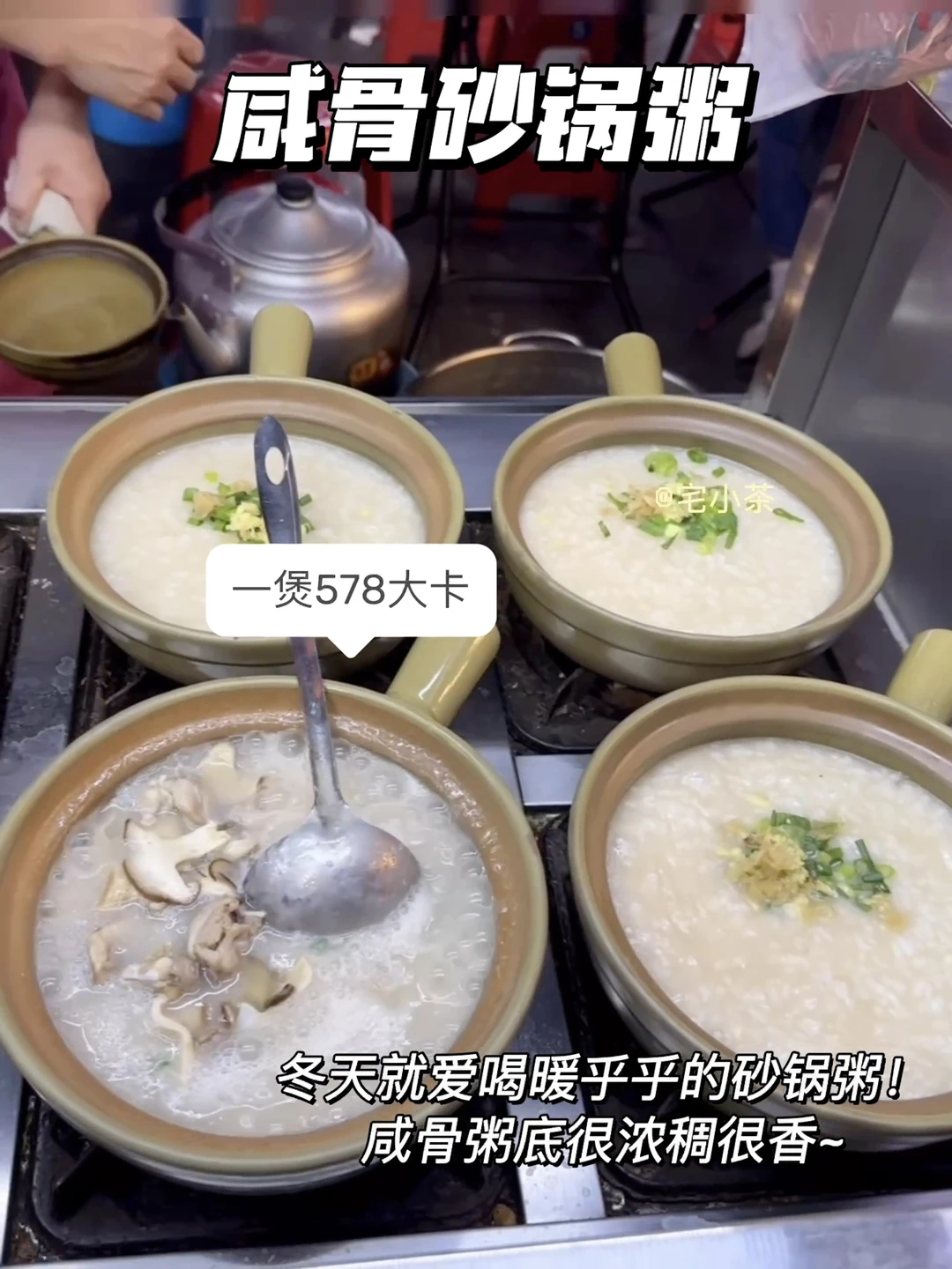 ➡️咸骨砂锅粥:一煲578大卡