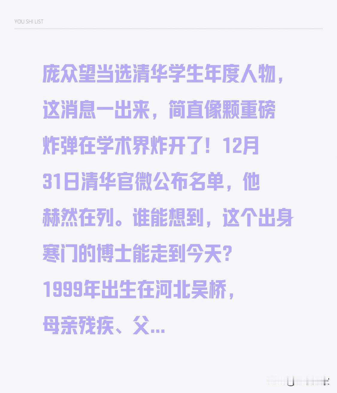 庞众望当选清华学生年度人物,这消息一出来,简直像颗重磅炸弹在学术界炸开了!12月