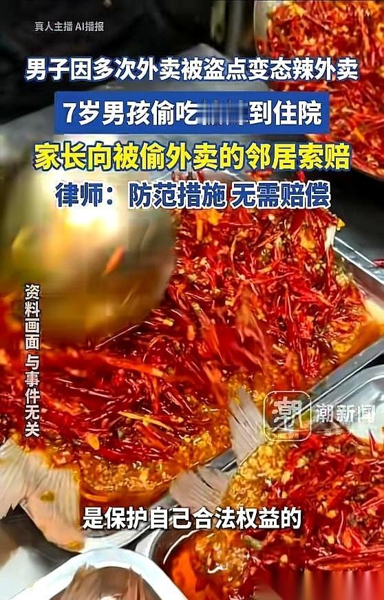 真的,有些事儿我看不懂,但我大受震撼。 偷了人家的外卖,吃坏了肚子,结果家长反手一个起诉,把被偷东西的人给告了。 你敢信? 事情是这样的。北京一哥们儿,老实人,天天点外卖,结果天天被偷。你说气不气?监控死角,抓也抓不着。换我,我可能就自认倒霉了。但这哥们儿是个狠人,直接点了份“变态辣”,就搁门口,钓鱼。 结果呢?一个7岁的小孩没忍住,顺走了。 当晚,孩子就急性肠胃炎,上吐下泻进了医院。 高潮来了。孩子家长找上门,不是来道歉的,是来索赔的。理由是:你把外卖放门口,引诱我家孩子犯错!你点的外卖太辣,害我家孩子住院! 我天,这脑回路,是把“无理搅三分”刻在DNA里了吗? 自家孩子手不干净,不管教,反倒怪别人的饭菜口味太重?这不跟小偷去你家偷东西,结果自己摔了一跤,还要你赔钱一个道理吗? 还好,法院是懂人话的。 判决结果:驳回诉讼。点外卖合法,吃什么口味是个人自由。总之一句话,守法的人,没义务为违法的人的愚蠢和贪婪买单。 这个判决,真解气。 说白了,惯子如杀子。今天他敢偷一份外卖,明天呢?当爹妈的不好好教,总有一天,社会会替你狠狠地教。 只是到时候的学费,可能就不止一份变态辣了。