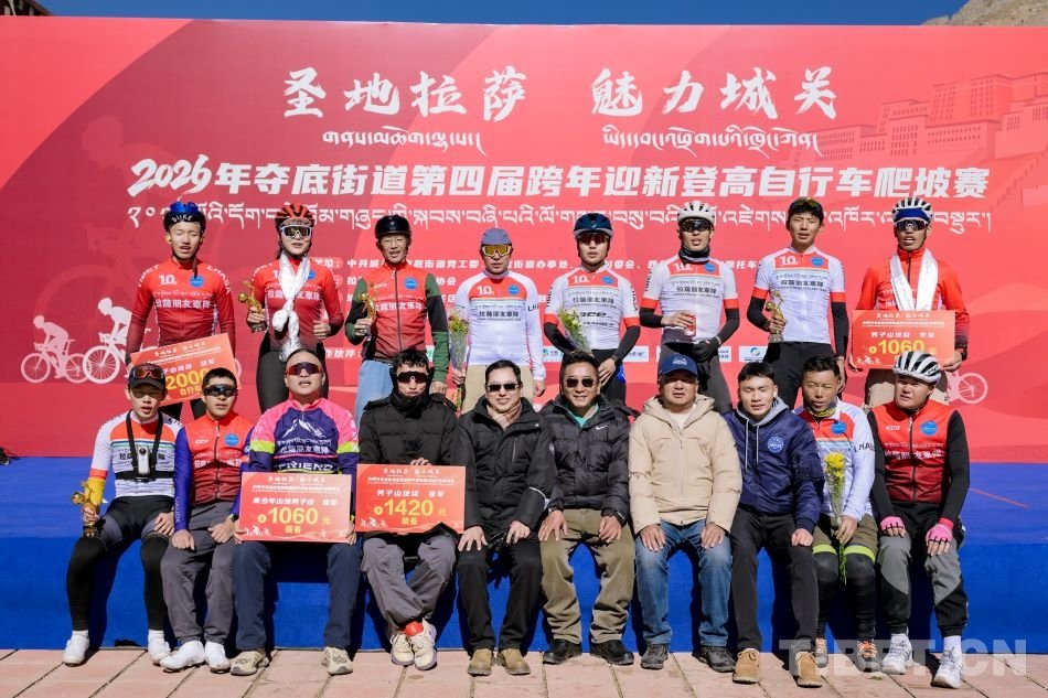 中国西藏网讯1月1日,“圣地拉萨魅力城关”2026拉萨市城关区夺底街道第四届跨年迎新登高自行车爬坡赛在夺底沟维巴村好客藏家生态旅游景区顺利举办。
