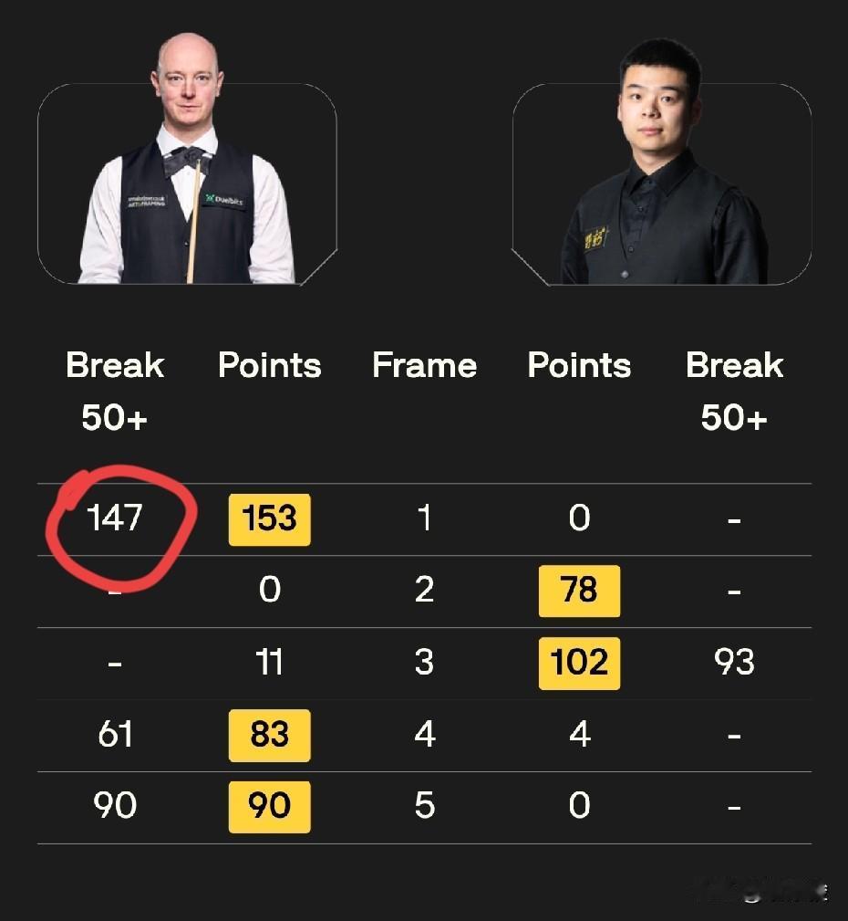 冠军联赛第一组首日比赛, 奥康纳暂列第一,庞俊旭排第五。韦克林打出单杆147,目