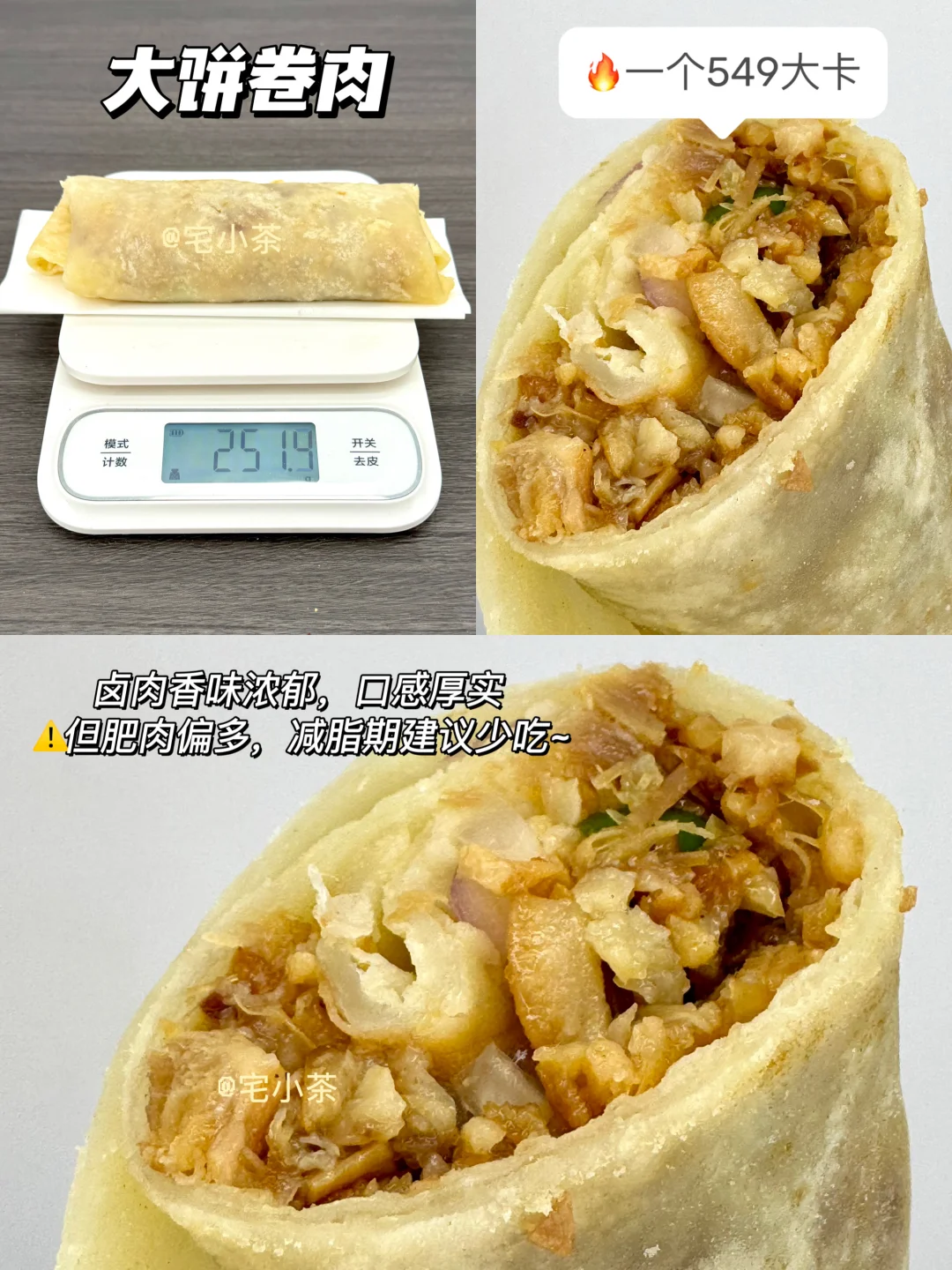 卤肉香味浓郁,口感厚实,但肥肉偏多,减脂期建议少吃~