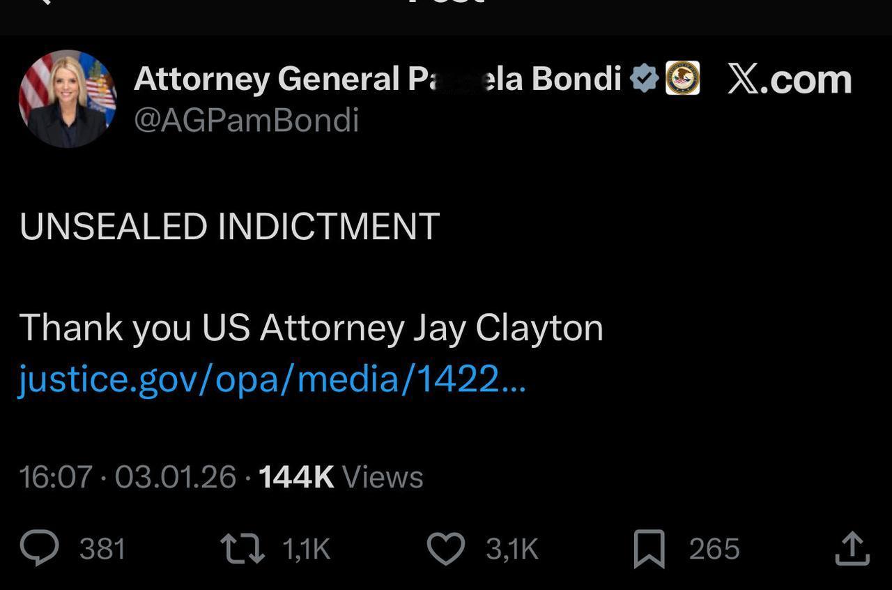 美国司法部已经对马杜罗提起诉讼,他们会很快对他进行审判。