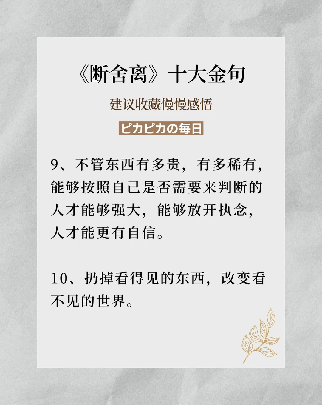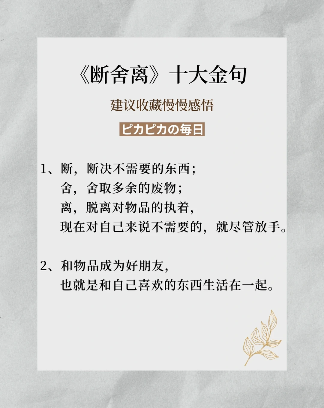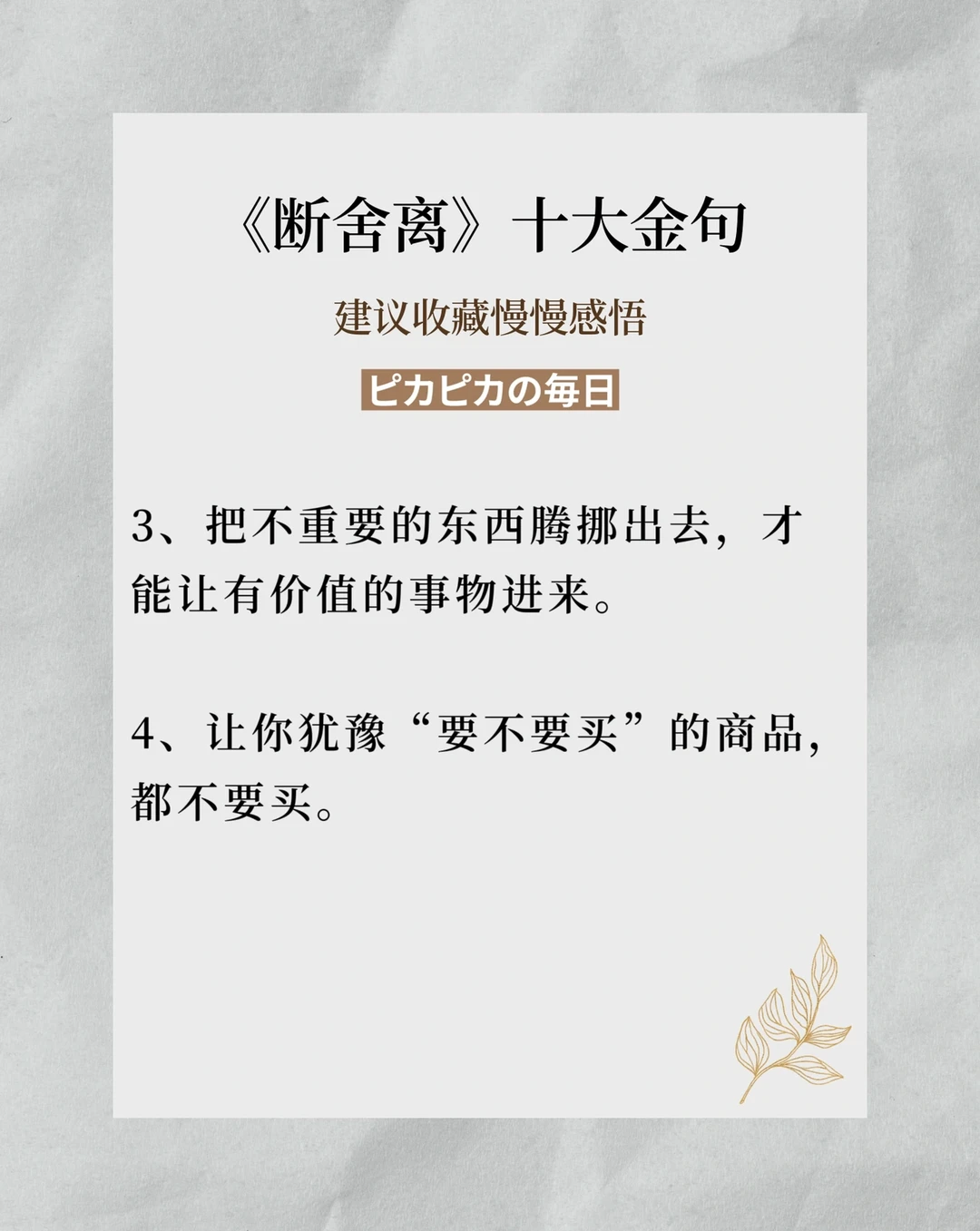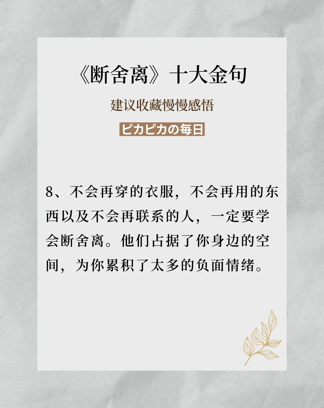 🌟《断舍离》书中十大金句,建议大家收藏慢慢看,减法生活就是不断学习与复盘所得。