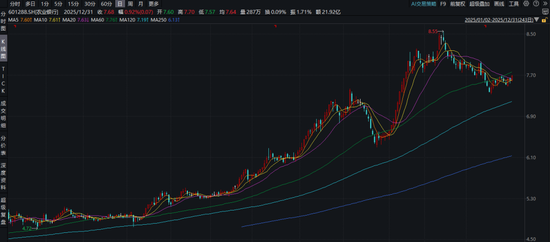 其中,农业银行以年度52.66%的上涨幅度断层式领先,其作为国有大行的代表一次次打破市场预期,甚至被市场称为“农伟达”。在这背后,则是该行凭借经营稳健性下的分红确定性,成为以险资等长期资金代表在“资产荒”背景下的核心配置首选,从而获得显著估值溢价。值得一提的是,农业银行年内股价一度创历史新高,流通市值超越工商银行。