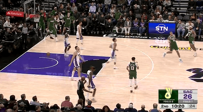 罗林斯三分追进,雄鹿投进6记三分&目前已领先国王两位数