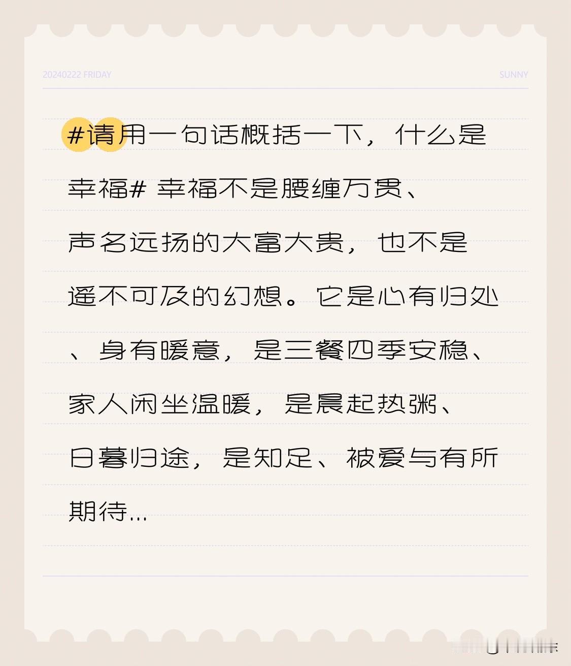幸福不是腰缠万贯、声名远扬的大富大贵,也不是遥不可及的幻想。它是心有归处、身有暖意,是三餐四季安稳、家人闲坐温暖,是晨起热粥、日暮归途,是知足、被爱与有所期待,藏在平凡生活每一处细碎里。