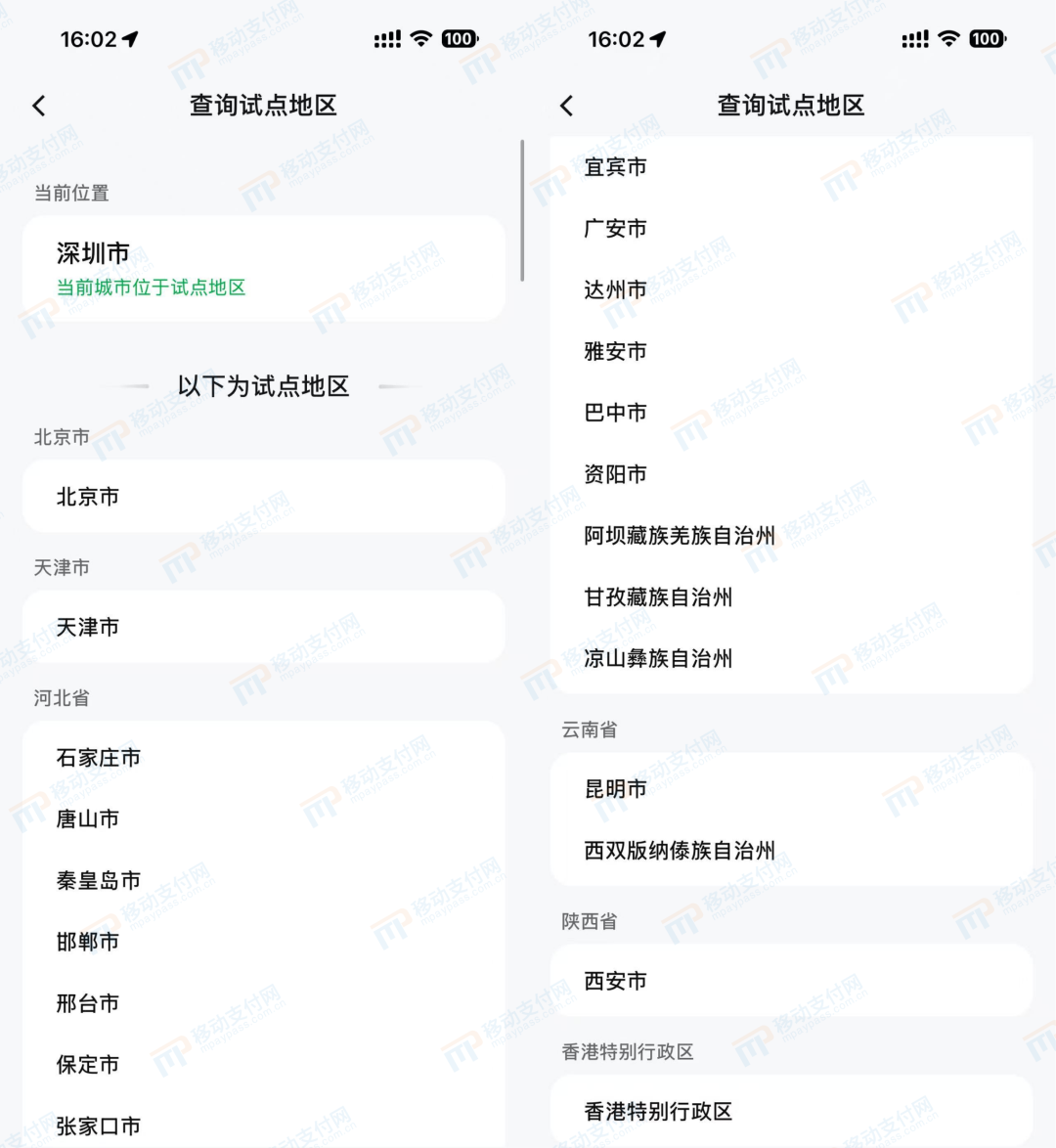 除此之外,移动支付网注意到,数字人民币App2.0版本在其他界面也有更新优化。例如,在钱包类型说明中,可查询具体的试点地区,其列出了境内17个省市区的26个地区,5个全省试点的省份还具体列出了所有的地级市,同时境外的香港特别行政区也出现在列表中。