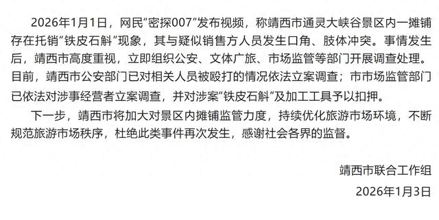 靖西市政府迅速成立联合工作组立案调查,公安部门对肢体冲突立案、市场监管部门扣押涉案物品并调查经营者,景区发布致歉声明,这一系列快速响应及时回应了公众关切,有效缓解了舆情热度,彰显了整治乱象的决心。但从舆情反馈来看,公众更期待的是长效治理而非短期应急。景区作为游客集散地,理应对场内及周边经营行为承担起主体管理责任,尤其是出口这类人流集中的关键区域,更应严格把控摊位资质,建立常态化巡查机制,及时甄别并清理托销等违规行为。唯有景区守好管理第一道关,监管部门亮出执法利剑,才能真正斩断伸向游客的黑手,让景区回归休闲观光的本真属性,让每一位游客都能安心享受旅途,也让地方旅游经济在诚信的根基上实现长远发展。