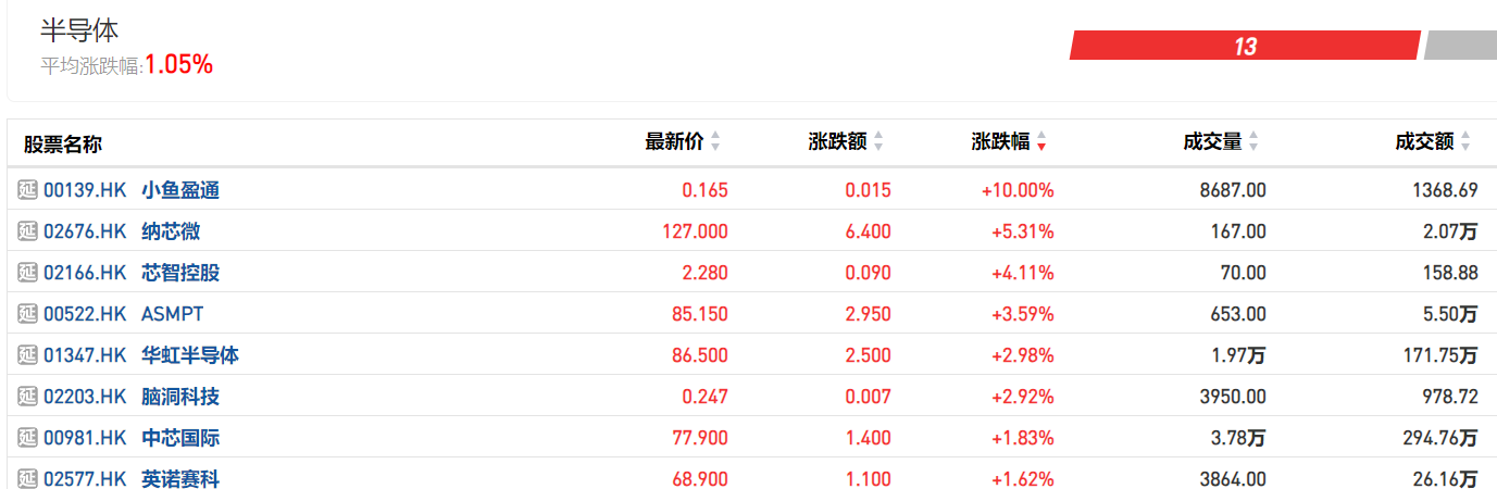 图注港股半导体板块表现