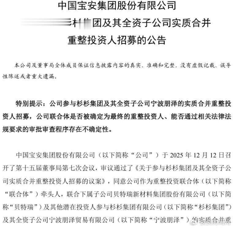 此公告一出,意味着方大炭素给持续了仅40天的参与行动正式画上句号。回看方大炭素的参与过程,2025年11月24日,公司召开第九届董事会第十四次临时会议,审议通过了《关于拟参与杉杉集团及其全资子公司实质合并重整投资人招募的议案》,同意参与上述两家企业的实质合并重整投资人招募,并授权公司管理层开展后续一系列工作。