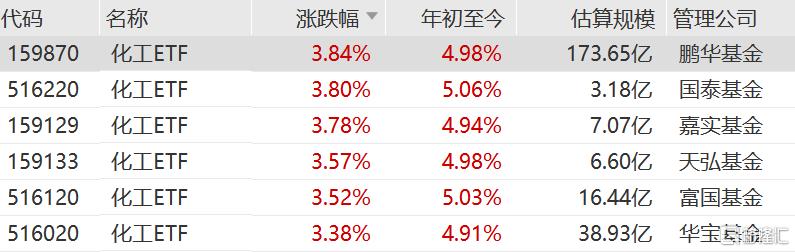 化工ETF、化工龙头ETF、化工ETF嘉实、化工ETF天弘、化工50ETF涨超3%。