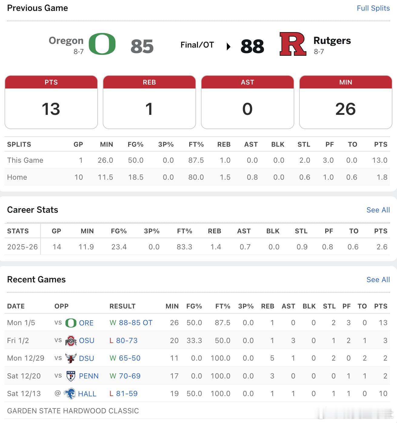 今天对俄勒冈完成关键抢断的Rutgers大一后卫Lino Mark,也打出了自己的赛季最佳表现。本赛季场均上场12分钟只有2.6分的他今天出场26分钟得到了13分。Lino Mark高中在洛杉矶Notre Dame打球,就是赛季出让全美第一Tyran Stokes离队的那个高中。前两年我去拍过几次Notre Dame的比赛,Lino Mark在高四是四星高中生,排全美100名上下,身体素质非常劲爆,可惜投篮很一般。早几年的话,他这样的四星后卫在今年Rutgers这样NCAA实力在100名上下的球队应该是能捞到更多上场时间的。可是这几年由于NIL政策的开放和NCAA的疯狂招募,大联盟球队可以留给大一新生的机会确实越来越少了。NCAA美国高中篮球