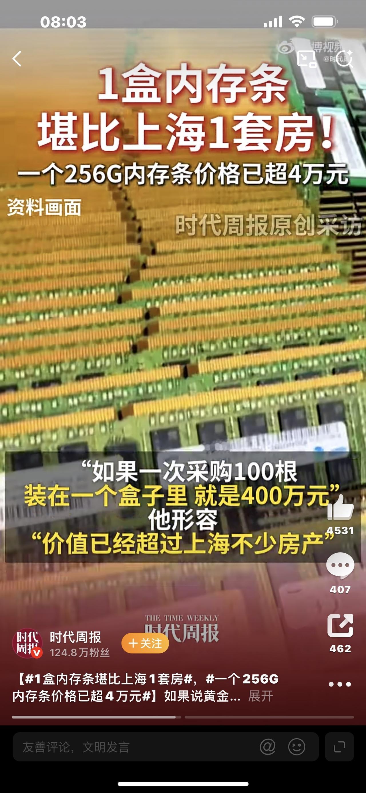 疯了!一盒内存条=上海一套房?2026最魔幻涨价潮,普通人太难了! 家人们谁懂啊!现在买盒内存条,居然能在上海换套房了? 256G DDR5服务器内存单条突破4万,100条装一盒直接冲到400万——要知道上海二手房均价才4万多一平米,这一盒芯片,妥妥能拿下核心区百平米小户型!更扎心的是咱们普通人装机用的内存,去年618两条16G才800块,现在直接翻倍涨到1600,32G单条更是从500多飙到1699,升级个电脑的预算直接翻三倍! 你以为这是商家炒作?真相远比想象中魔幻!本来内存市场三四年一个涨跌循环,可这次完全不按常理出牌——消费电子市场还在低谷徘徊,内存价格却一骑绝尘,核心原因居然是“AI抢了咱们的内存”! ChatGPT引爆算力竞赛后,科技巨头们疯狂建数据中心,一台AI服务器的内存需求是普通服务器的8-10倍。三星、SK海力士这些大厂一看,直接把产能从利润低的普通内存,全转到了AI专用的高价内存上,DDR4更是直接停产减供。就像面包店全去做高端蛋糕,普通馒头自然供不应求,价格疯涨。 更魔幻的是囤货潮:手握上亿资金的资本方疯狂扫货,赌价格继续上涨;而街边装机店却不敢多囤,生怕砸在手里,拿货只能一次三四条。这波涨价早已传导到终端,小米、vivo旗舰机涨价300-700元,组装电脑成本飙涨40%,商家销量直接腰斩,不少公司都开始凑旧电脑办公,刚需装机党只能望价兴叹。 有人说这是数字时代的淘金热,可淘金的从来不是普通人。当一根内存条的价格,超过了很多人一年的工资;当科技进步的红利,变成了资本炒作的镰刀,我们能做的,要么咬牙为刚需买单,要么选择性价比更高的国产内存过渡。 这波内存涨价还会持续到2026年下半年,你最近有装机、升级内存的计划吗?是咬牙入手还是暂时搁置?评论区聊聊你的真实经历,也别忘了转给身边要配电脑的朋友避坑!内存条行情 内存品牌排行 天价内存条 台式电脑内存