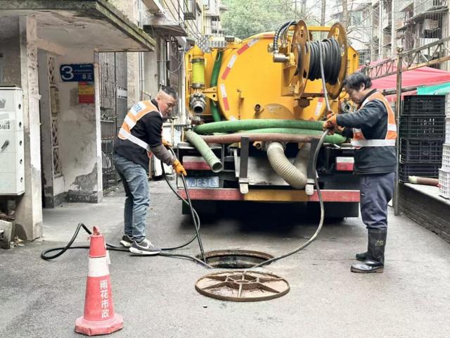 清淤疏浚市政排水管网作为2025年雨花区人大代表票决十大民生实事项目之一,由雨花市政实施,现已全面完成。雨花市政化粪池清掏班组负责雨花区12个街道的无物业开放式小区化粪池日常清掏、弃渣外运作业维护,防止因满溢造成的环境污染。花花在现场看到,化粪池清掏班组组员邓轩伟全然不顾污水溅到身上,正和同事一起使用高压疏通吸污车上的机械设备,清理管道内的淤积物。虽然冬季气温较低,可他却忙着满头大汗,清理出来的淤积物装满了两大桶,解决了老旧小区下水管网堵塞问题。