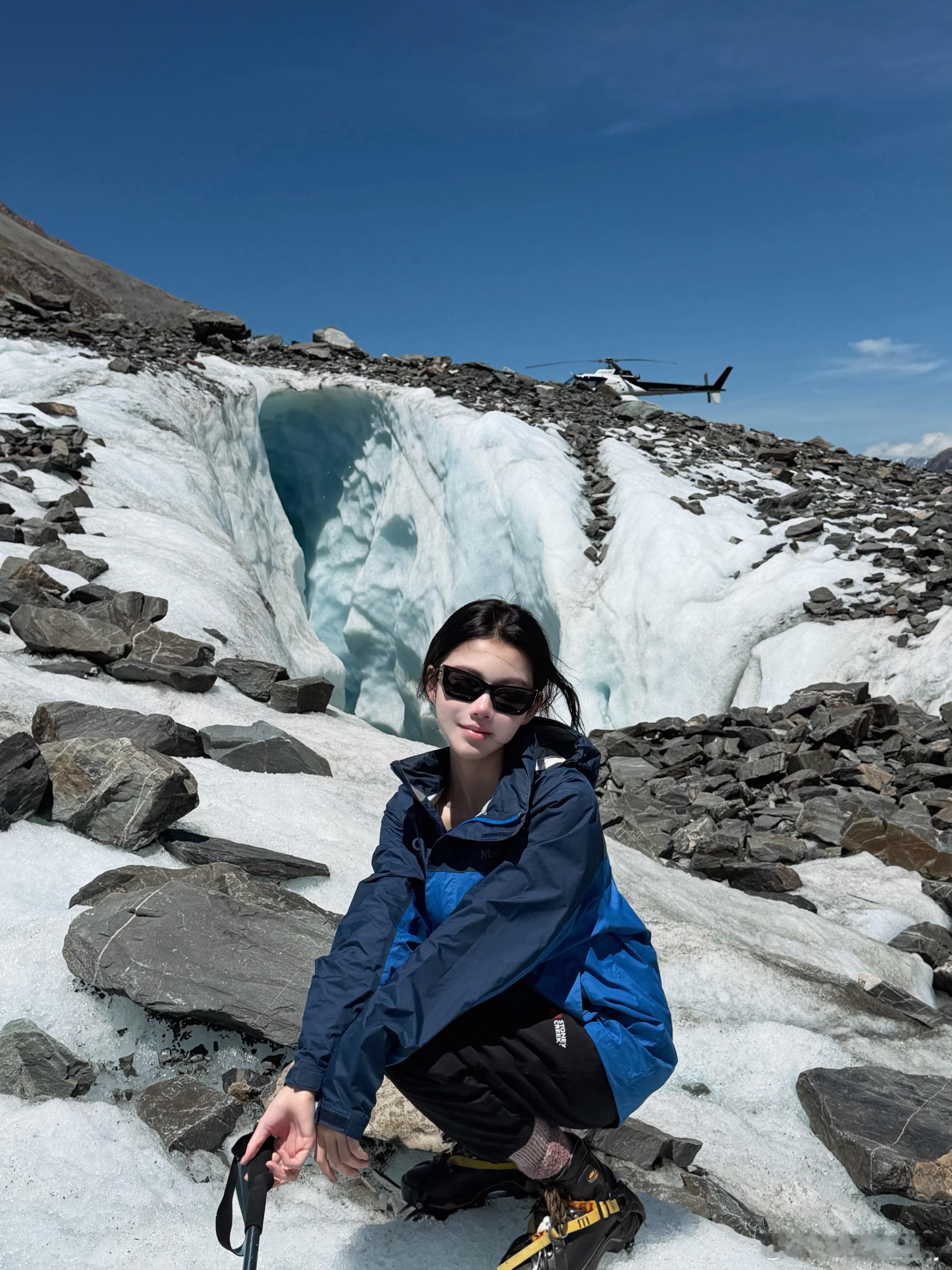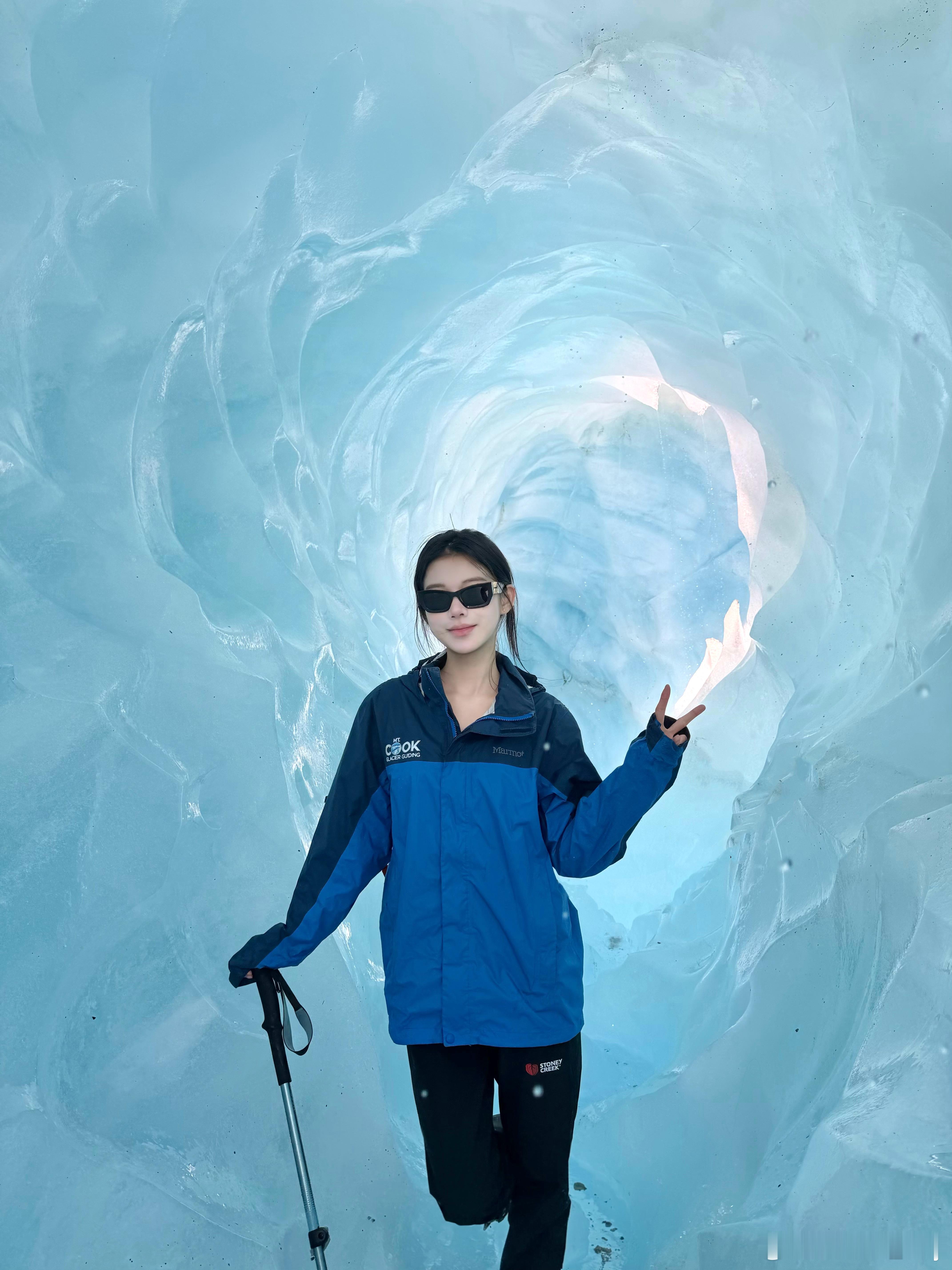Mt cook🗻Tasman冰川徒步!没有白费力去 从tekapo开了一个多小时去库克山 山路真的超抖 天气依然很好没有被取消 同行的一对澳洲母女昨天就来了因为下雨取消了行程 好吧我当时是撞到车的一种补偿坐直升机去雪山上就开始了两个小时的徒步体验!很新奇 一路我们12个人像糖葫芦串子一样排成一排走 还看到了蓝洞