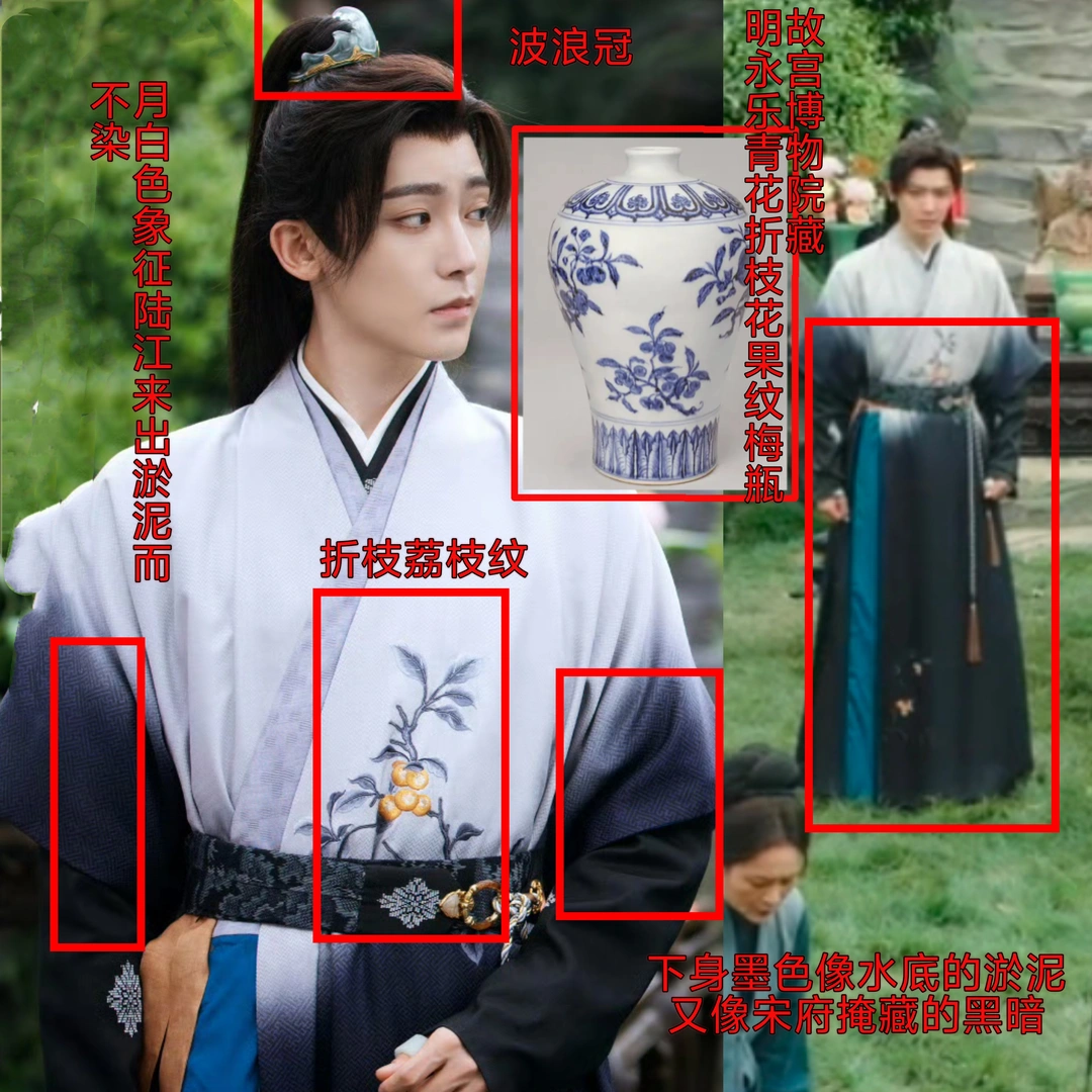 ✅玉茗茶骨中陆江来的发冠是波浪纹,不仅与他的衣服很配,也颇有深意。