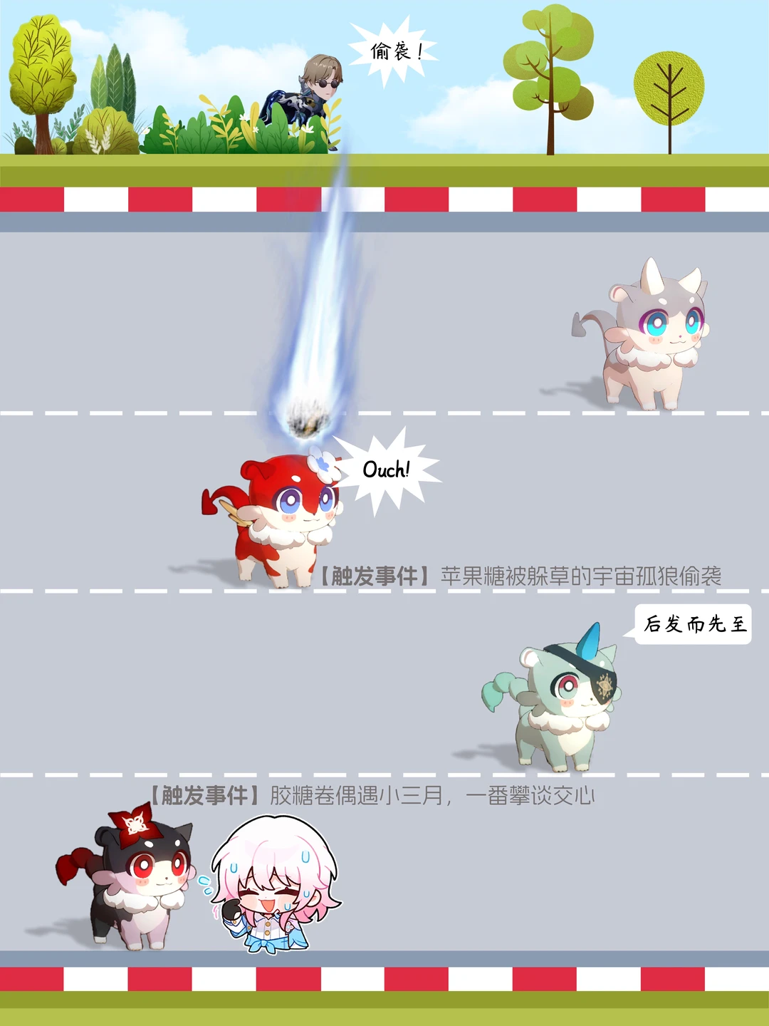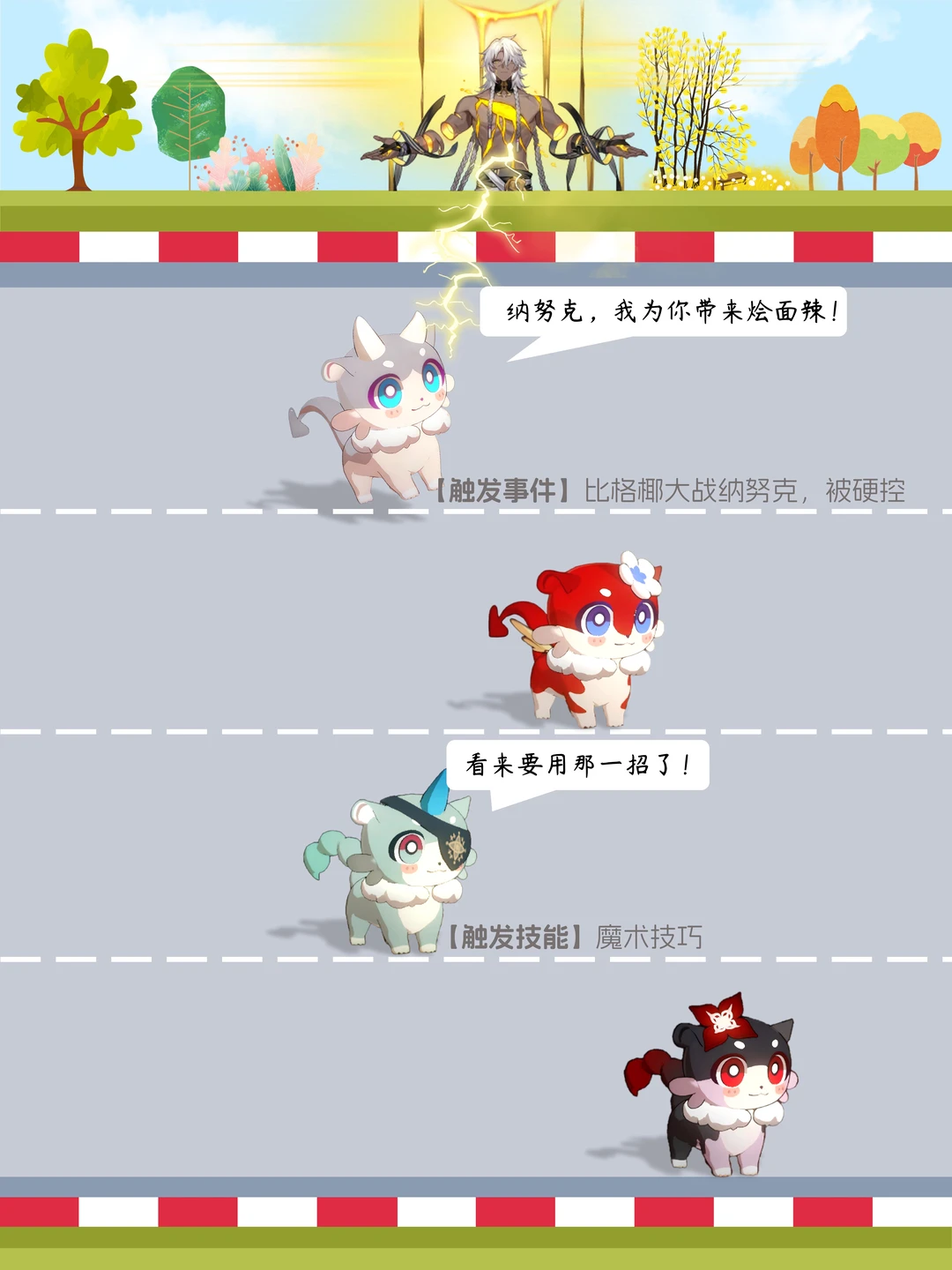 “崩”跑吧~奇美拉向前冲 【初赛】 参赛选手 [一R]号:比格椰🥥(白厄) [二R]号:苹果糖🍎(缇宝) [三R]号:努努斯🫒(那刻夏) [四R]号:胶糖卷🎞️(长夜月) [举手R]你支持哪位选手呢? [蹲后续H]那个小只会夺冠呢? [氛围感R]【本期结果】在P7