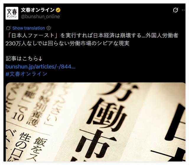 近日,安田在日本媒体“文春在线”上表达了这一观点,称一旦在“日本人优先”的口号下,拿230万在日外籍劳工开刀,那么日本的劳动力市场将无法运转,整个经济也将随之崩溃。