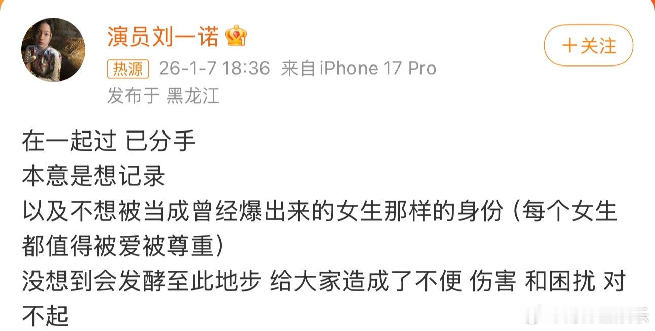 檀健次刘一诺 已分手檀健次 三只单身狗今日下午,网曝檀健次 刘一诺恋情,引发讨论。檀健次晒出视频,并配文:“三只单身狗”后,刘一诺发文回应:“在一起过,已分手。本意是想记录。以及不想被当成曾经爆出来的女生那样的身份(每个女生都值得被爱被尊重),没想到会发酵至此地步,给大家造成了不便、伤害和困扰,对不起。”