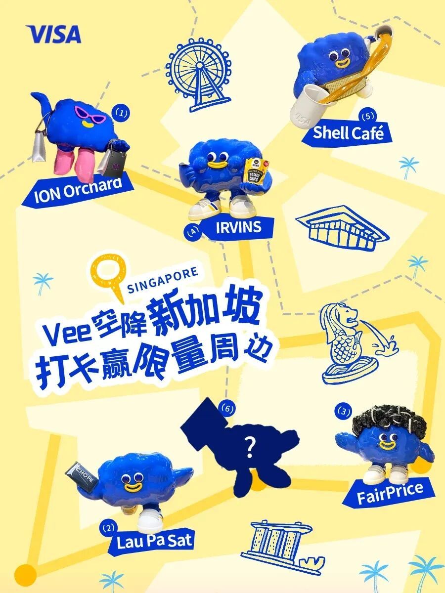 用户和空降新加坡的Vee打卡,就有机会获得限量周边,图源:Visa官方小红书