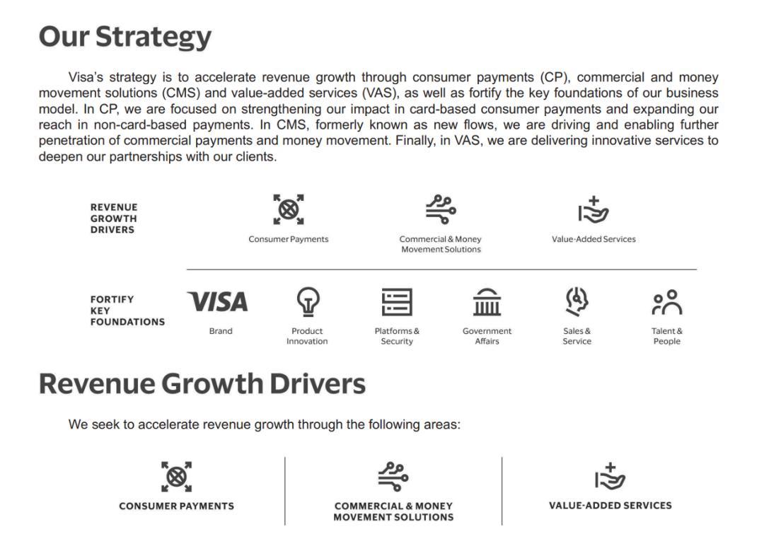 Visa年报中指出的增长策略,图源:Visa2025年年报