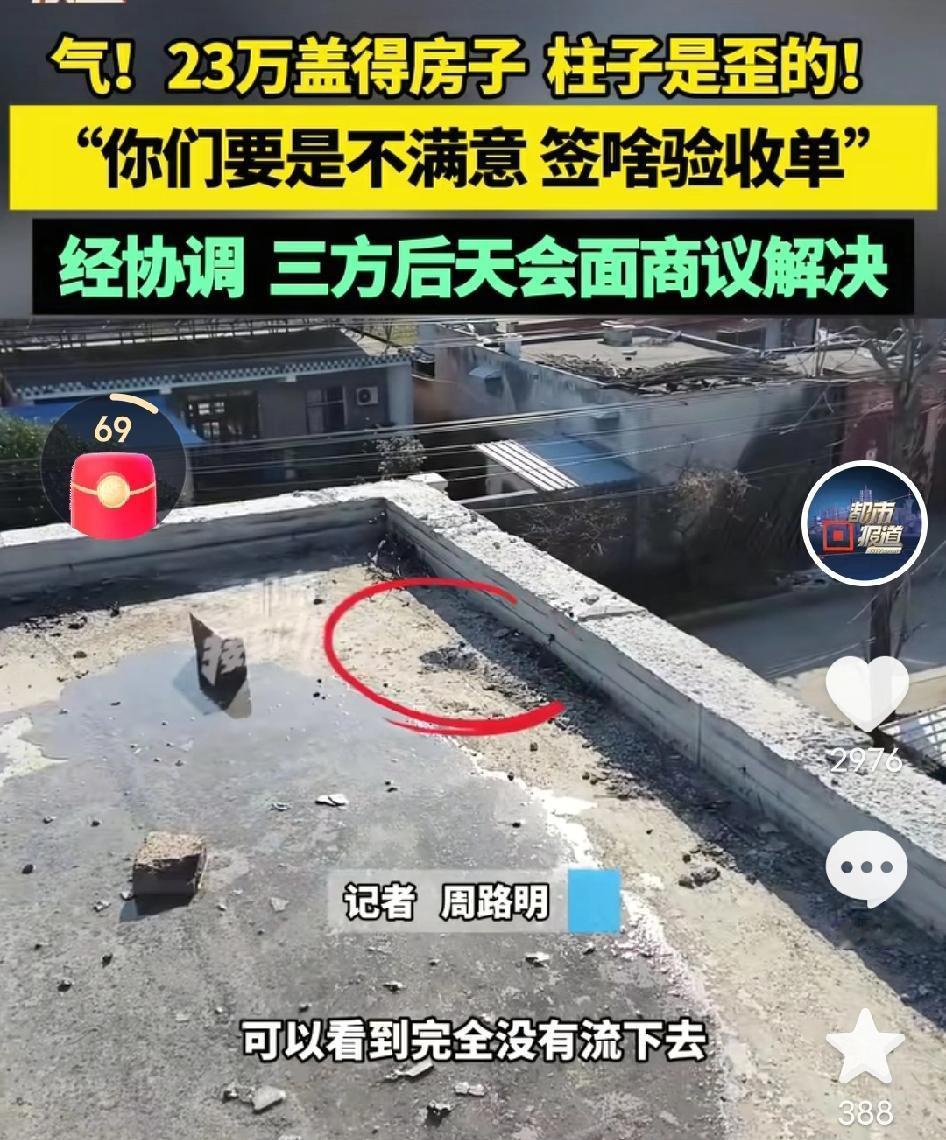 河南许昌!陈女士倾尽23万积蓄盖的新房,竟成了柱子歪斜的危房。更让她崩溃的是,收钱的建筑公司法人失联、大门紧锁,留下她叫天天不应,叫地地不灵。谁能想到?倾尽积蓄盼来的安居梦,转眼变成了叫天天不应的维权噩梦。 陈女士半辈子省吃俭用,一分一分抠出来23万,就盼着能盖个敞亮的新房,让一家人舒舒服服过日子。眼瞅着房子封顶那天,她还特意买了鞭炮庆祝,心里美滋滋地盘算着啥时候搬进去。 结果刚交房没几天,她去屋里打扫卫生,一抬头就瞅见不对劲——客厅那根承重柱,咋看咋别扭,拿水平仪一量,好家伙,居然歪了小半寸!这可不是小事啊,柱子是房子的顶梁柱,歪了的话,住进去哪天塌了都不知道! 陈女士当时腿都软了,赶紧掏出手机给建筑公司老板打电话,那头一开始还敷衍两句,说"派人去看看",结果等了三天,连个人影都没见着。再打过去,直接就成了忙音,发微信更是石沉大海。 陈女士急得不行,揣着合同就往建筑公司跑,到了门口直接傻眼了——大门上挂着一把锈迹斑斑的铁锁,院子里荒草丛生,早就没人影了。她蹲在门口,越想越委屈,眼泪噼里啪啦往下掉,逢人就念叨:"我一分钱都没欠他的啊,开工前给一半,封顶给一半,钱给得足足的,他怎么能这么坑我!" 后来陈女士联系媒体又跑了一趟公司,情况还是老样子,大门紧锁,法人的电话打了几十遍,始终没人接。好在后来经过多方协调沟通,失联多日的建筑公司法人终于有了回应,同意三天后和陈女士面对面会面协商解决 有网友看完气炸了:"23万啊,这得是一个普通家庭攒多少年的血汗钱!柱子都是歪的,这不是豆腐渣工程是什么?这老板良心不会痛吗?" 也有网友从法律角度分析:"这已经不是简单的质量问题了,建筑公司明显是违约,而且出了问题就失联,性质太恶劣了,必须承担法律责任。" 还有网友则说出了很多人的担心:"现在农村自建房的纠纷太多了,都是熟人介绍,合同也不规范,出了事根本没地方说理。希望这个事能给大家提个醒,建房一定要签正规合同!" 说实话,这事看完我真是一肚子火!23万对咱普通人来说,那可是半辈子的家底,是牙缝里省出来的辛苦钱,就想换个安稳窝,结果换来这么个闹心事。 这建筑公司老板也太不地道了,收了钱就撂挑子,出了问题就玩失踪,简直是把良心揣进了裤兜里!要不是相关部门介入协调,陈女士这事指不定还得拖到什么时候。房子是用来住的,不是用来闹心的,更不是用来赌命的! 希望三天后的会面能有个实在结果,建筑公司能拿出该有的担当,把歪柱子整改到位,给陈女士一个满意的赔偿。 也给咱老百姓提个醒:以后不管干啥事,尤其是这种大额支出,合同一定要签明白,承诺要写进纸面,证据一定要留好,真遇到事儿了别慌,找对监管部门和媒体,咱的血汗钱不能白白打了水漂! 对这个事情,你怎么看呢? 欢迎关注 @市井烟火事 许昌23万新房柱子歪斜 豆腐渣工程 消费者维权 来源:都市报道