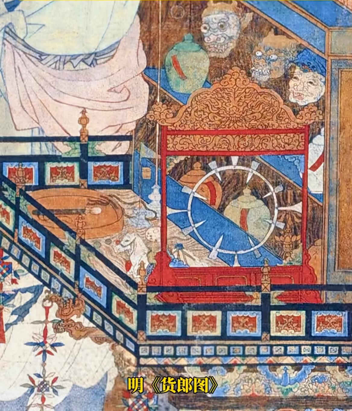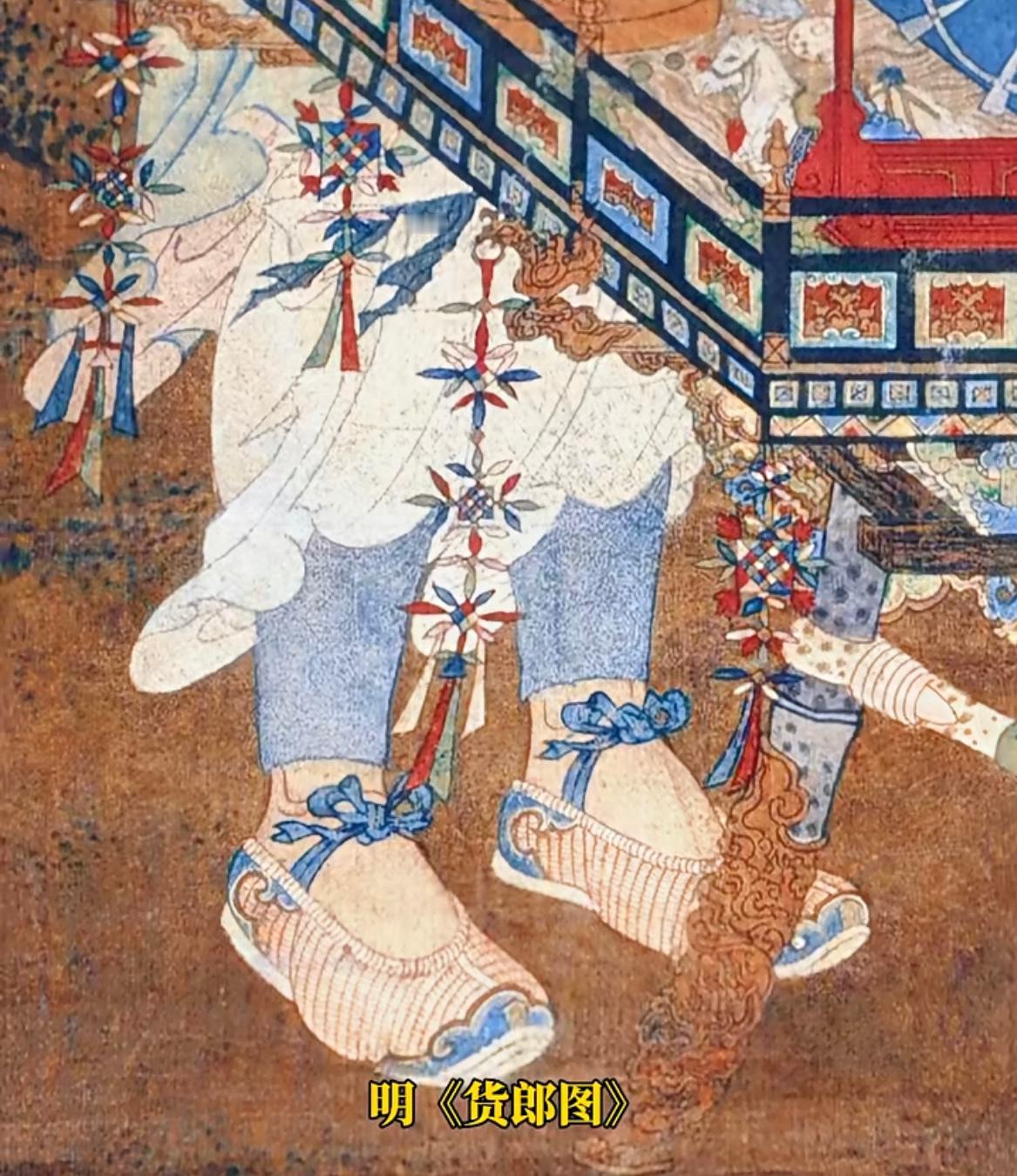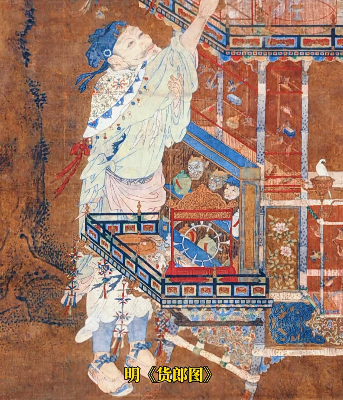 明代《货郎图》,这货架设计的真是精致而巧妙啊,货郎穿的鞋子也挺好看的。 明代