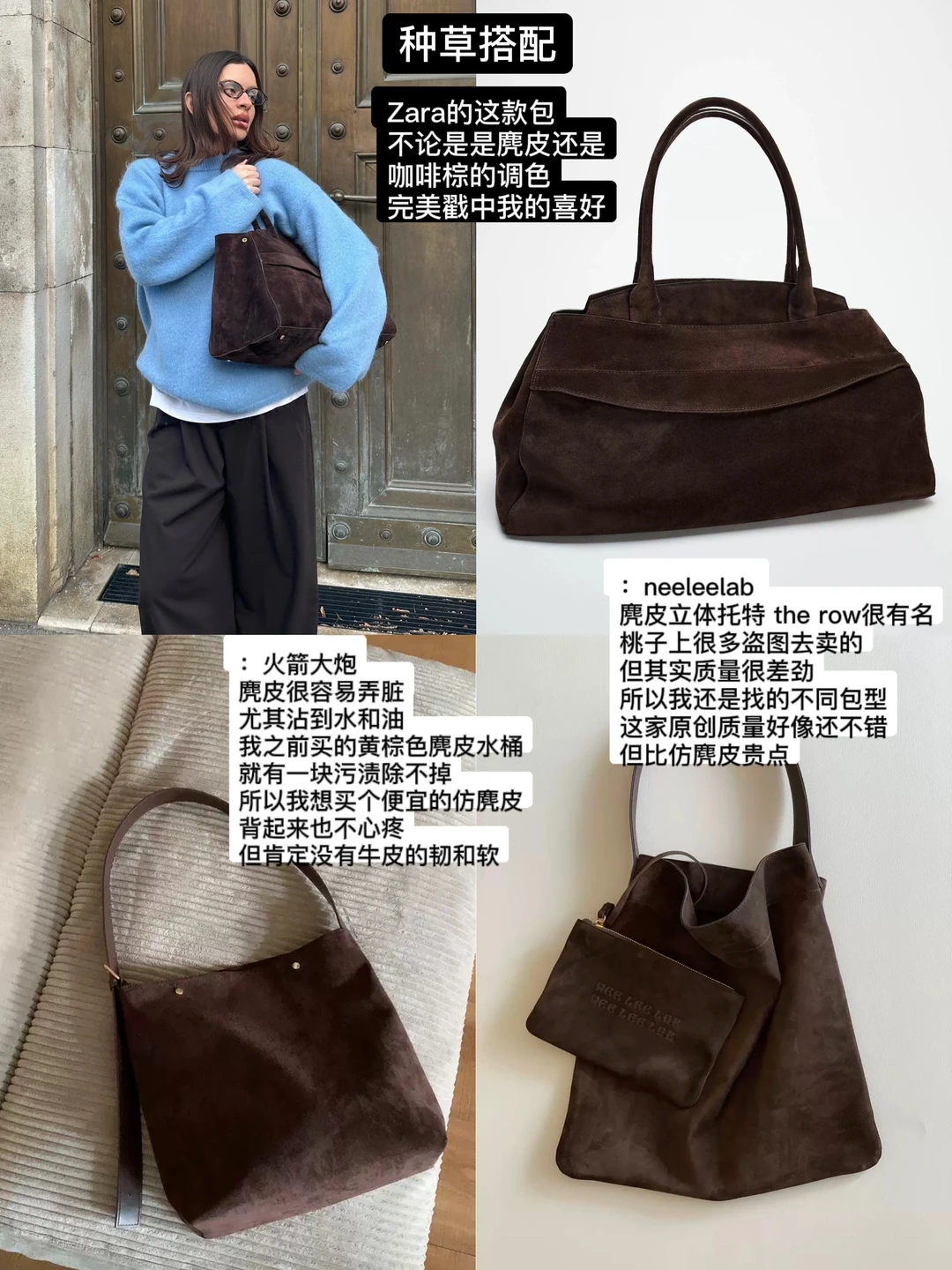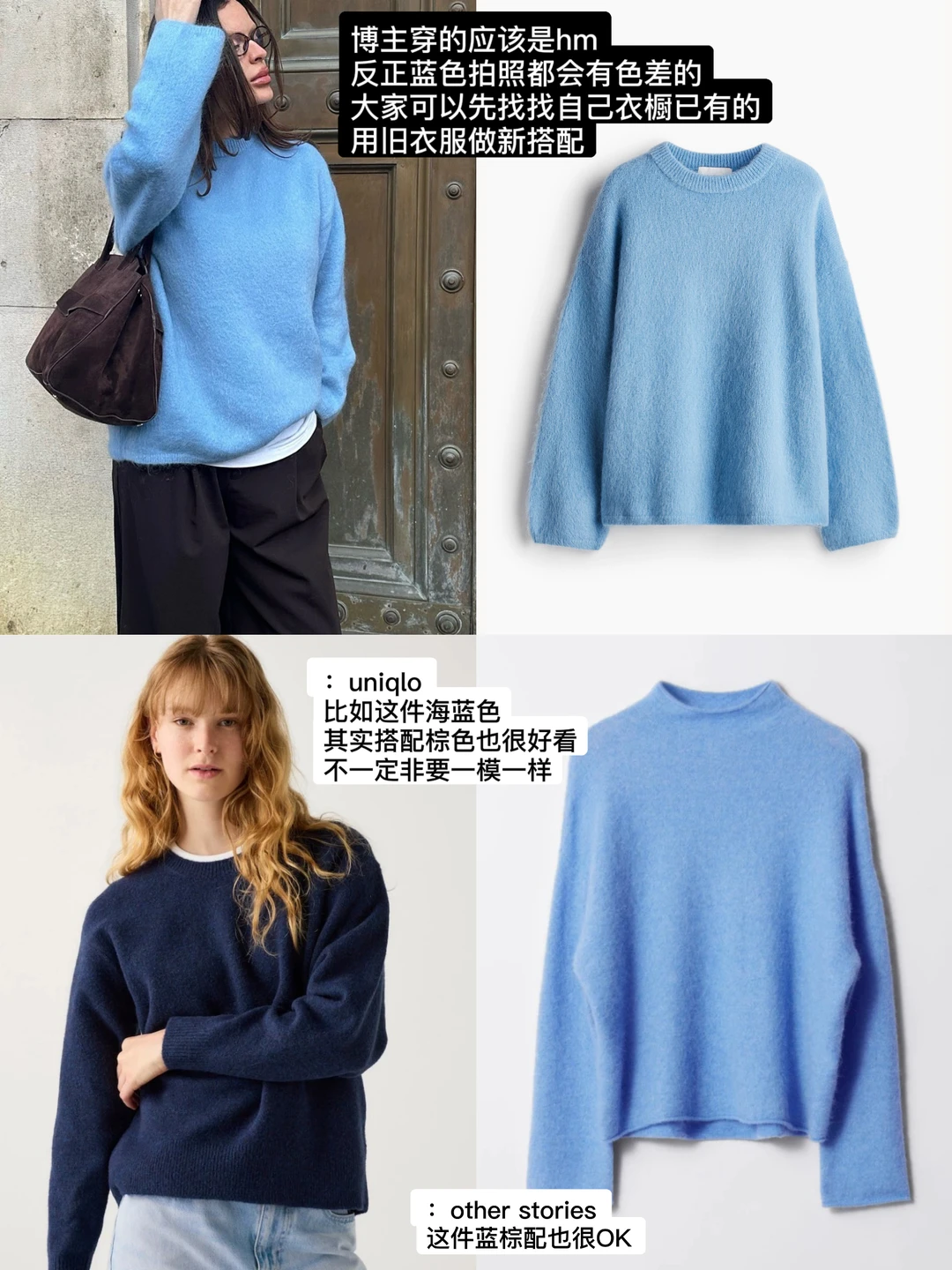 ▪️蓝色毛衣➕咖啡棕麂皮托特包