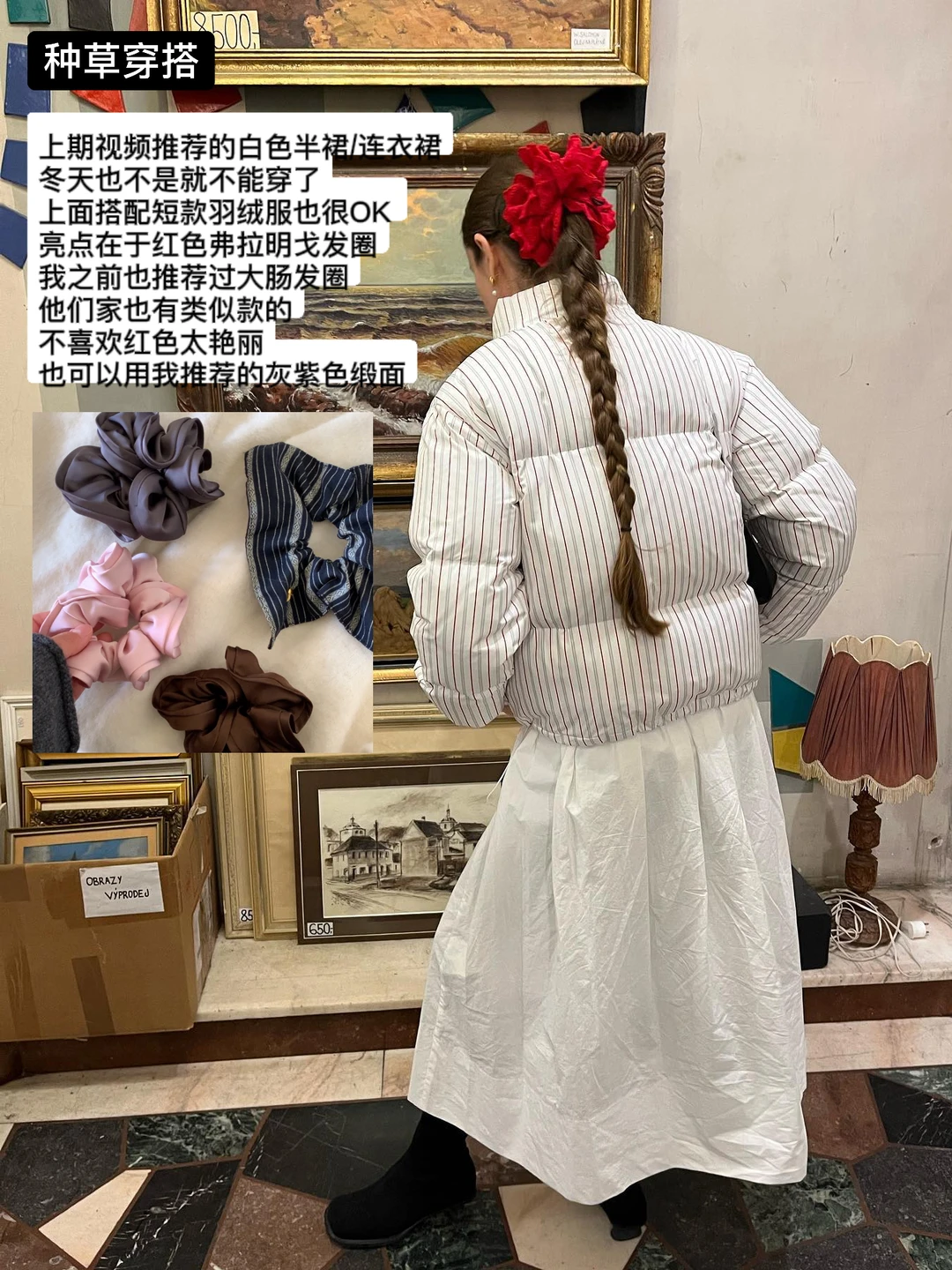 ▪️秋冬白裙子的穿搭可能性还是很高的,红色弗拉明戈发圈也是一个很重要的point