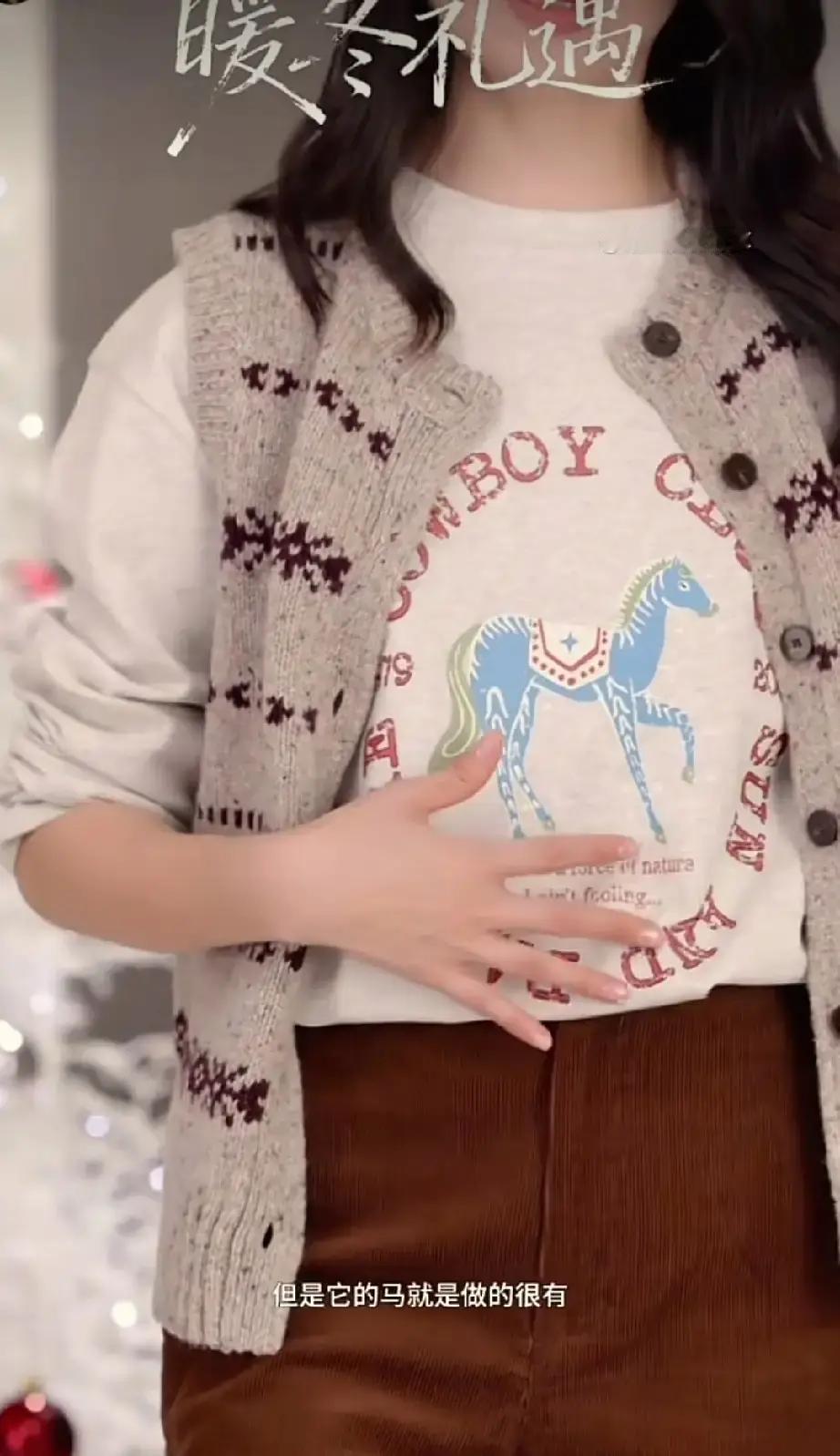 现在的直播带货界,也就董洁那儿还能让人静下心来看两眼 别人都在声嘶力竭喊倒计时,她拿着件复古风的小马甲在那儿轻声细语 这件针织背心有点意思,走的不是那种大街上随处可见的网红风,而是带点民族元素的调调 这种“旧”东西,反而最挑人,也最显贵 里头搭的那件长袖T恤更是心机深沉 明蓝色的马,画得跟壁画似的,那种斑驳感一下就把格调拉上去了 这就是聪明人做生意,马上就是马年了,这叫顺势而为 普通人看的是衣服,行家看的是选品逻辑 她把那种“知识分子风”拿捏得死死的 这年头,衣服不仅仅是蔽体的布料,更是一种身份认同 你穿个普通的卡通马,那是童趣 你穿个壁画马,那就是“有阅历” 这种微妙的心理拿捏,比单纯降价狠多了 看着那个图案,我都想给家里的衣柜来场大换血 毕竟谁不想让自己看起来更有故事一点呢