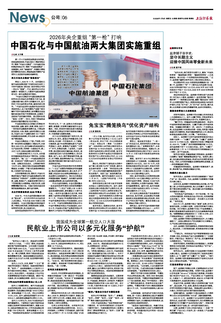 2026年央企重组“第一枪”打响 中国石化与中国航油两大集团实施重组