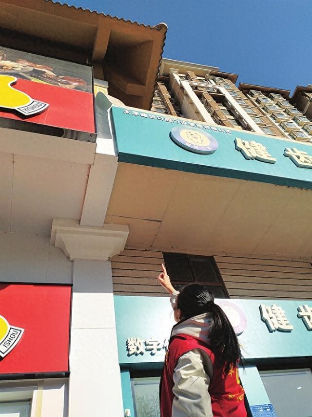 本报讯(记者韩睿文/摄)网格员在日常巡查中发现商户门头装饰开裂,摇摇欲坠。协调处置后,属地社区展开专项排查,排除3处隐患,有效防范大风天气下高空坠物风险,保障了居民出行安全。
