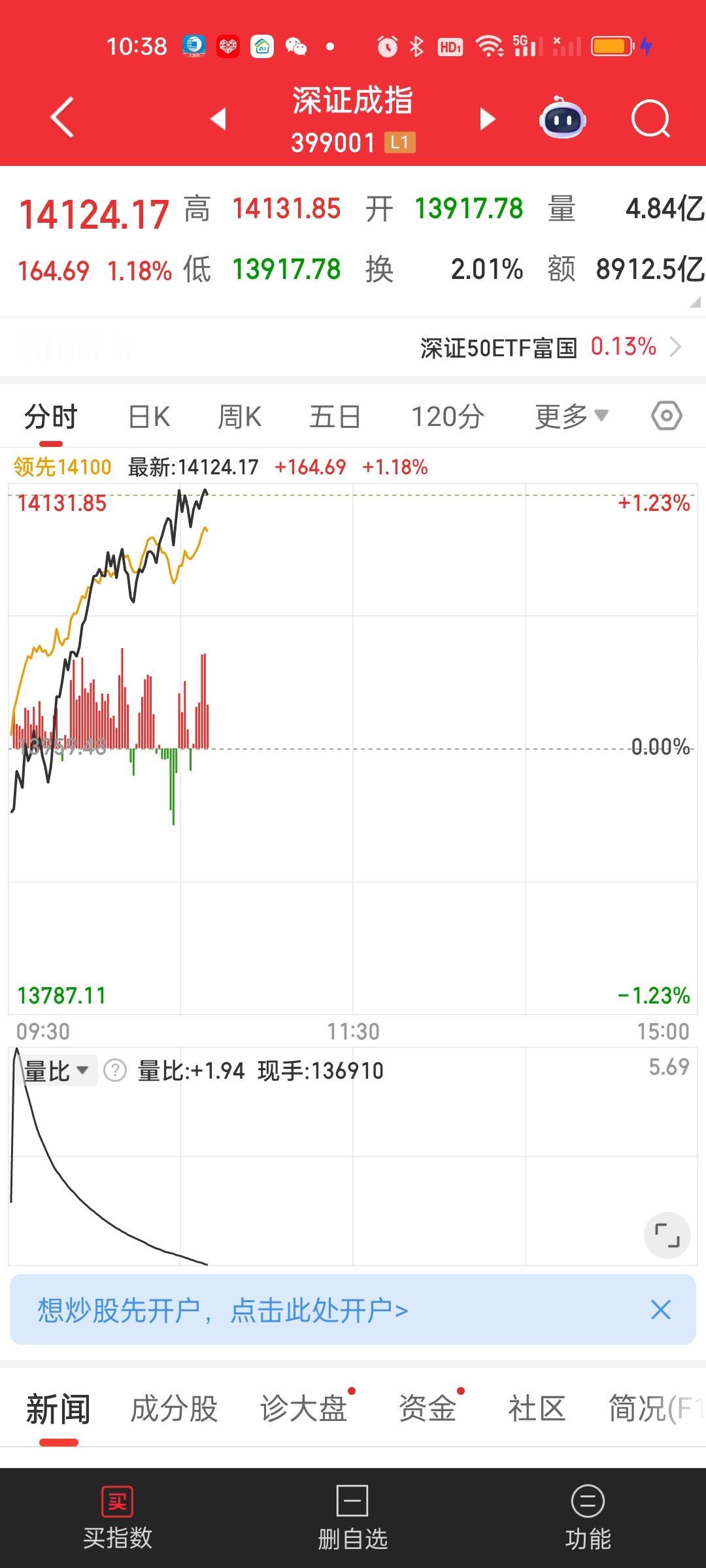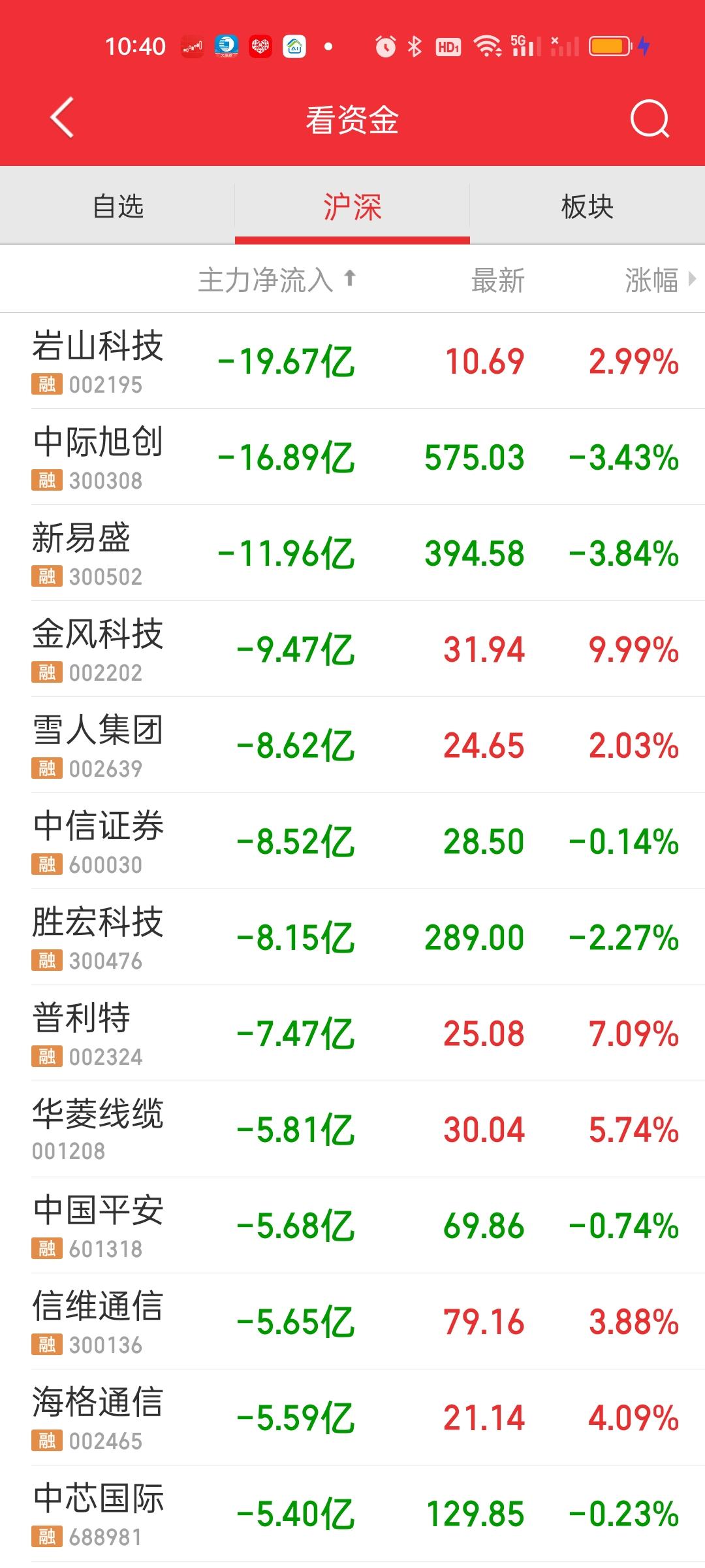 成交量没有问题啊,只要量能还在行情就没有结束。就会一直上攻,今天开盘一个小时就放量了1800亿,上涨家数超过了3700家,涨停家数有73家跌停家数只有1家。今天赚钱效应还是非常好的。 主力资金净流入方面,利欧股份,金发科技,三花智控净流入资金超过10亿,主力资金净流出方面,岩山科技,中际旭创,新易盛净流出资金超过10亿。中际和新易盛已经连续好几个交易日资金大幅净流出了。