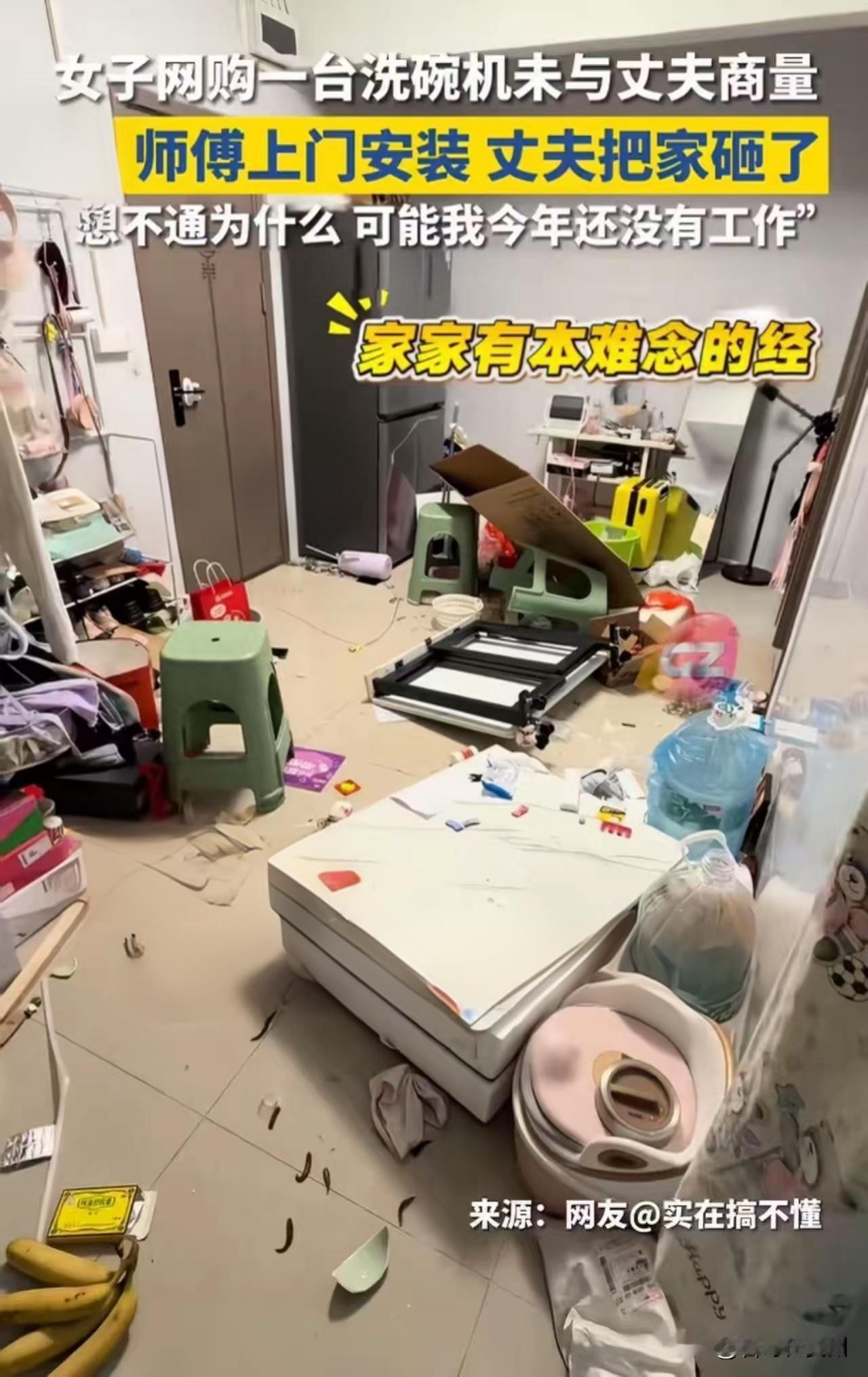 月薪过万却砸家!广东全职妈妈买台洗碗机,竟惹丈夫掀桌怒吼? “我只是手裂了口子,想省点力啊!”广东一位全职妈妈哽咽道。她偷偷买了一台洗碗机,没想到安装师傅上门时,丈夫瞬间暴怒——掀翻茶几、砸碎杯子,家里一片狼藉。月薪过万的丈夫对着她吼:“你问过我吗?”而她的双手,早就因为每天洗碗带娃,冻得满是裂口。 这哪是一台洗碗机的事?分明是婚姻里最扎心的“权力战争”。 宝妈一个人带俩娃,做饭洗碗全包,天天泡冷水,手糙得不像自己的。她看别人家用洗碗机省力,就咬牙下单了,没敢告诉丈夫。 丈夫回来一看就黑了脸:“退掉!现在压力多大你不知道?”宝妈委屈不退,等安装师傅一来,丈夫直接炸了——砸东西、吼人,把师傅都吓跑了。 说白了,两人都没错,也都有错。她错在“先斩后奏”,他错在“以钱压人”。 ✅ 挺宝妈派:“带娃做家务比上班累多了!手裂成那样他不心疼?不是洗碗机买不起,是妻子的劳力他不珍惜!” ✅ 挺丈夫派:“月薪一万在广州租房养四口,容易吗?花钱不该商量吗?砸家不对,但憋屈是真的!” ✅ 中立派:“夫妻缺乏沟通,一个觉得‘我累就该买’,一个觉得‘我赚才有话语权’。” 但真相往往是:全职妈妈的付出,总被“没收入”三个字轻轻抹掉。 而丈夫的压力,也常被“你是男人该扛的”一句话绑架。 婚姻最毒的思维,就是“谁赚钱谁做主”。家的温度,不在谁嗓门大,而在“遇事有商量,累时懂体谅”。 她需要被看见——那双裂口的手,是全年无休的代价;他也需要被理解——那句“问你了吗”,背后是扛家如山的恐慌。 一台洗碗机,照出了多少婚姻的影子:一个渴望体谅,一个渴望尊重。打败婚姻的从来不是钱,而是一个人的孤独战斗。 如果你的伴侣想买一件你舍不得的东西,你会怎么商量? 评论区等你——说说你家谁“管钱”,谁“管事”?餐饮洗碗机