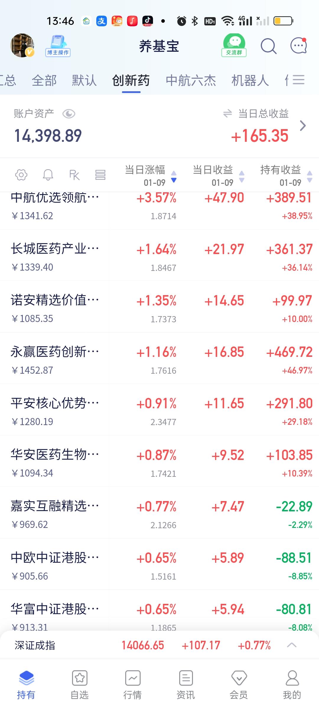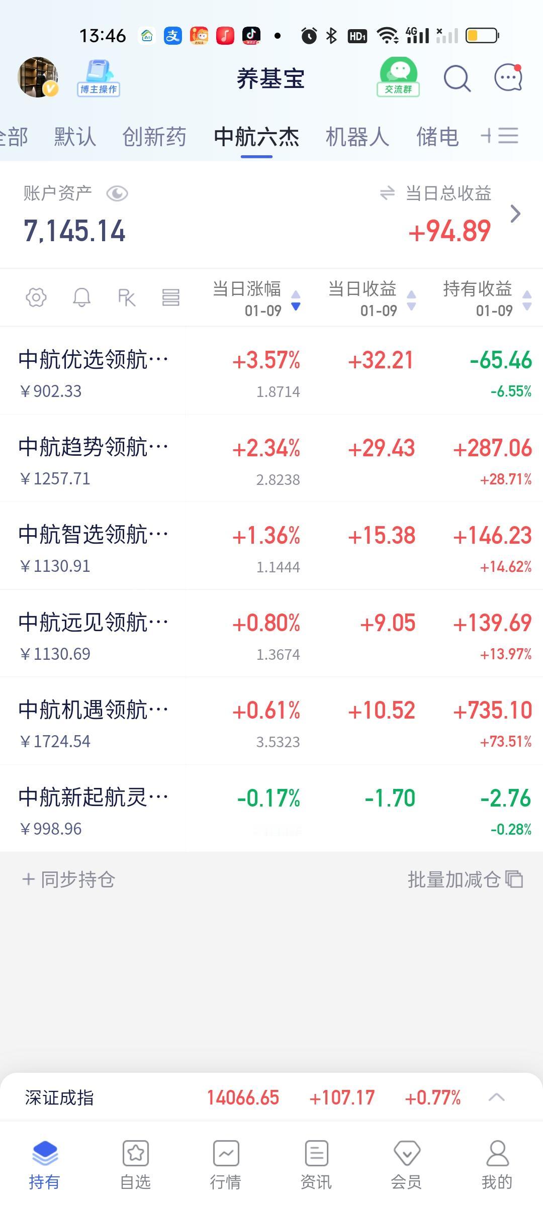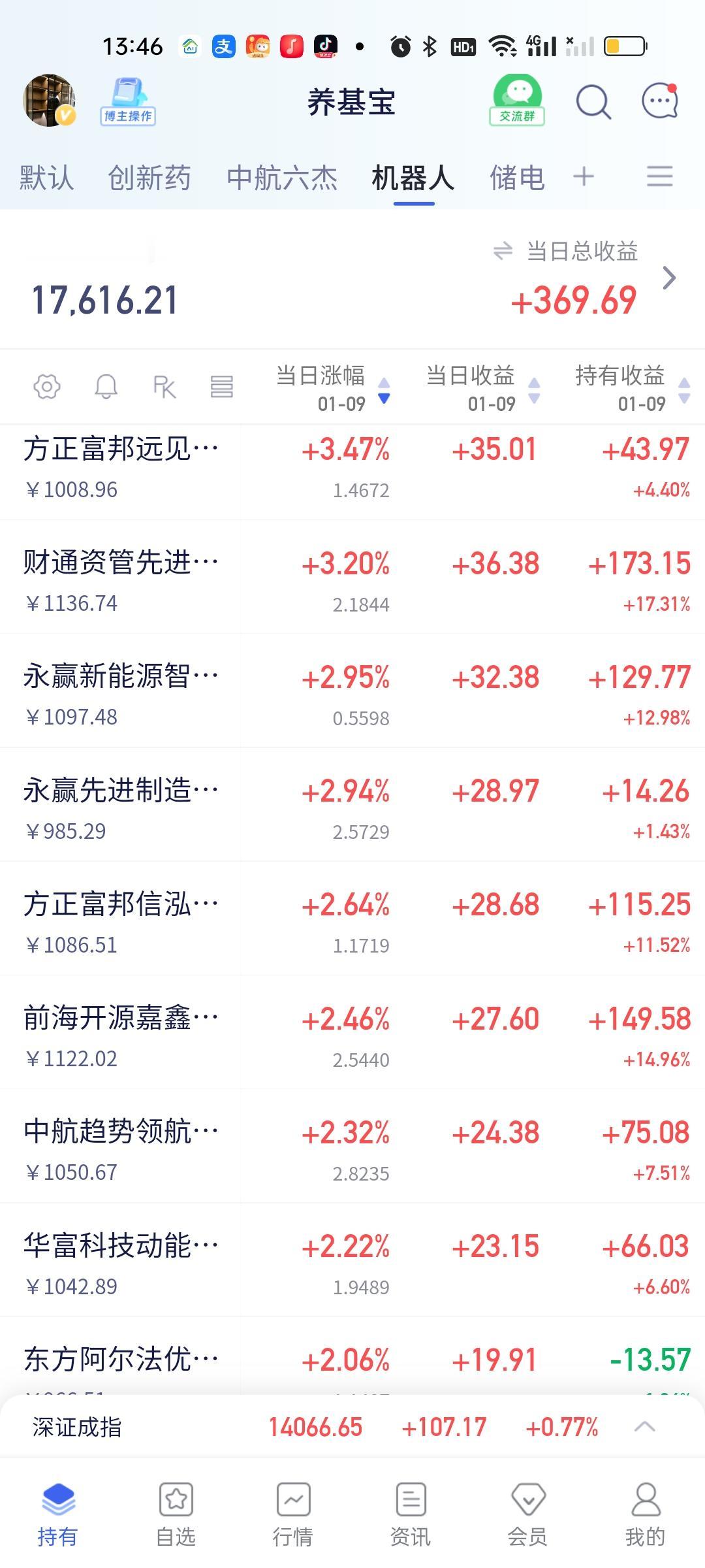 今天基金的赚钱效应没啥问题啊!军工,商业航天,可控核聚变继续大涨。白银,光伏,存储芯片,券券继续下跌,创新药拉了一些起来,机器人涨幅在加大。这个结果没啥不能接受的啊!