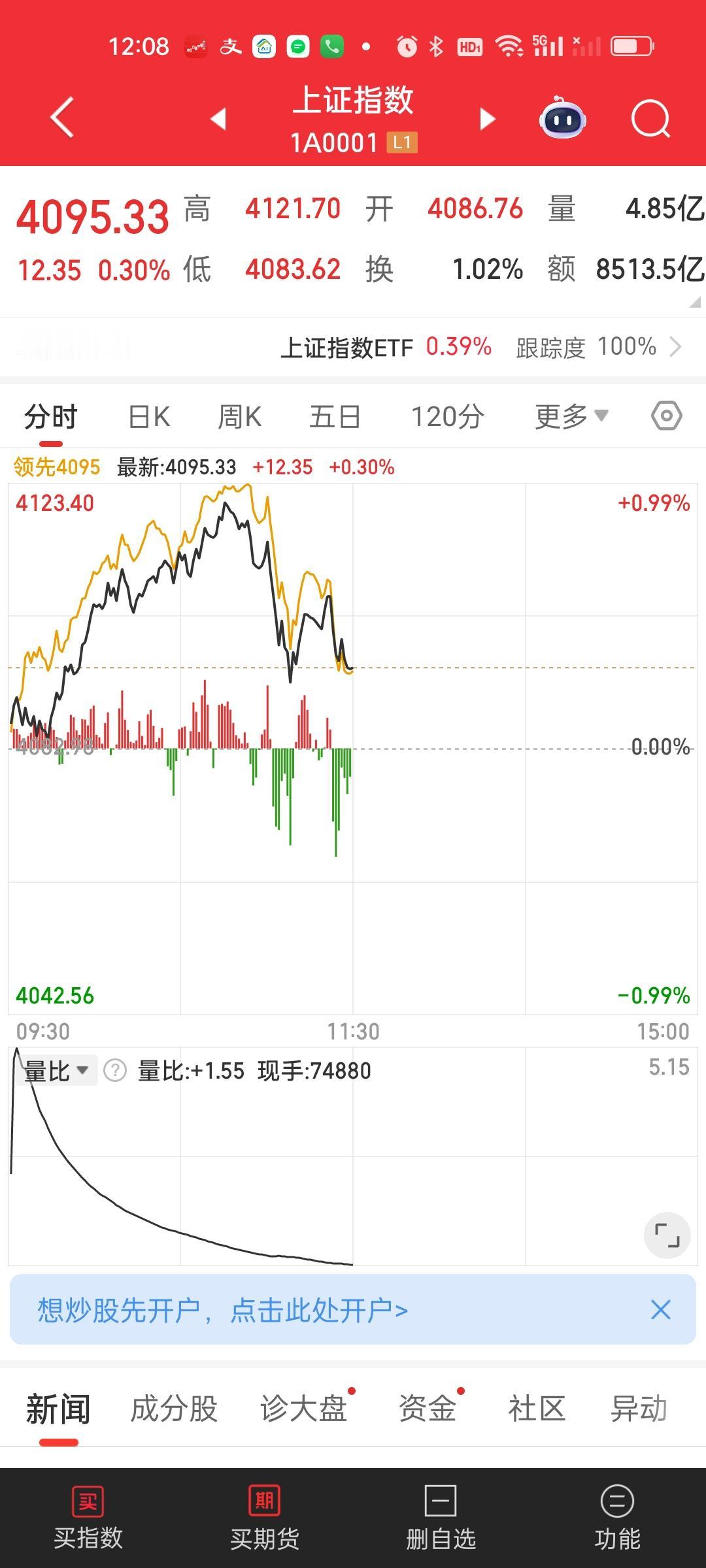 中午收盘了,临近收盘又是接近30个点的急速下杀,成交量放量超过3000亿,可能今天要破历史第一成交量,一个上午就成交了20819亿,确实很罕见,这个量也能排在历史前三,量能太恐怖了。下跌家数开始变多了。