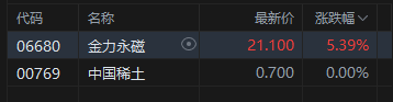 稀土概念涨幅居前,金力永磁涨超5%。金力永磁发布公告,该集团预计截至2025年12月31日止年度取得归属于上市公司股东的净利润盈利人民币6.6亿元-人民币7.6亿元,同比增长127%-161%。