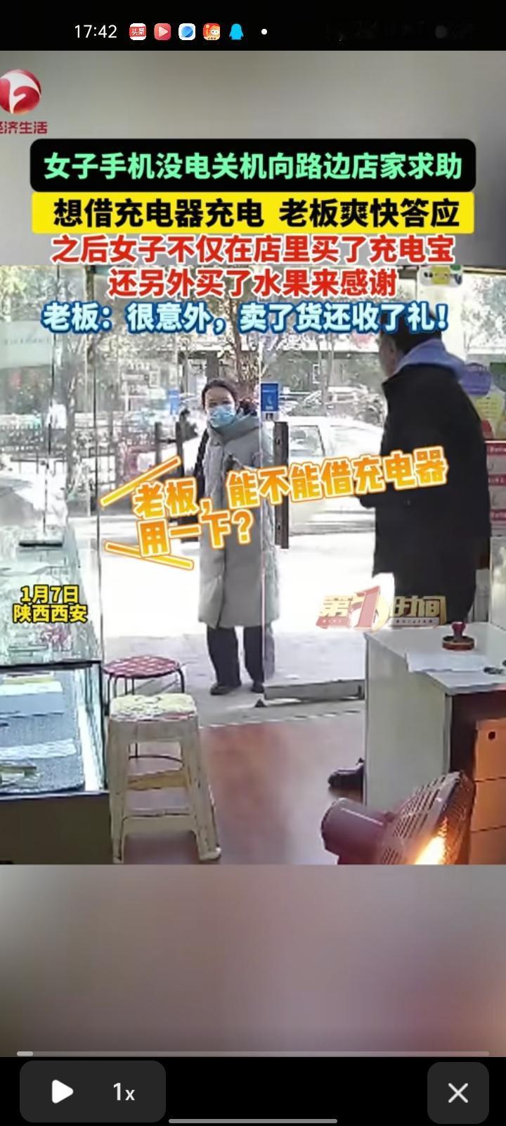 “他们都是讲究人!”陕西,女子的手机没电到店铺借充电器。老板同意,没想到,女子直