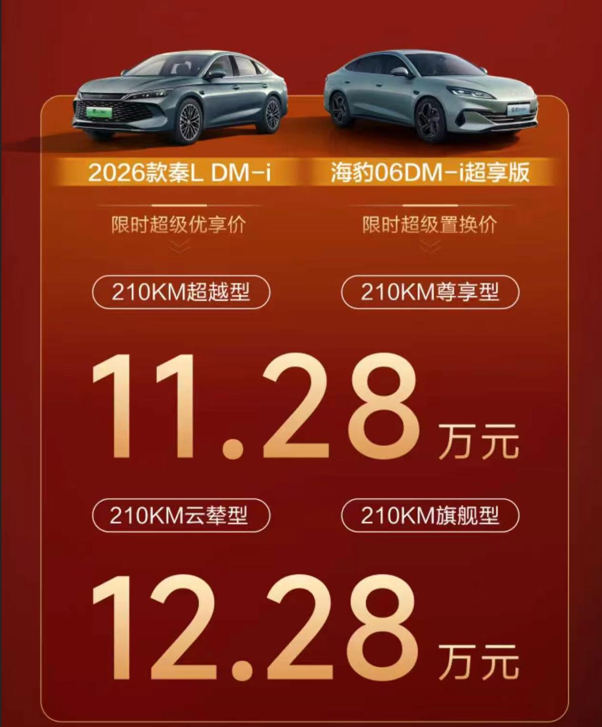 强得可怕!比亚迪把210KM大电池插混下探到8万元,高配版还带云辇! 相信很多人都知道,从2026年起,低于100KM纯电续航插电/增程车将不能上绿牌,所以大家都有心理准备,2026年插混或者增程车型会有大电池版本出现。 这才没过去几天,比亚迪就已经火力全开了,2026款秦PLUS/海豹05、和2026款秦L/海豹06纷纷加量,起步就是128KM纯电续航,高配版更是直接堆到210KM纯电续航,直接上了25度的插混专用刀片大电池。 其中,秦PLUS/海豹05的起步价还是7.98万,210KM长续航的大电池版本就加了一万元,并且还带电动天窗。而秦L和海豹06的大电池版本也挺有性价比,11.68万起,而这两块车的顶配版本,更是搭载了云辇C+预瞄准,这实在有点强得可怕。 更可怕的是这才是比亚迪的开胃小菜,毕竟这几款车价格在10万元左右,算是入门级的家用车型,除了有大电池插混,电池也是专用的插混刀片电池,再加上第五代DM技术,非常省油,综合续航可达2110KM。 真不敢想象,后面的SUV宋家族、海狮家族,还有汉家族、海豹07、08家族这些车型出来得有多夸张,DM车型是不是有可能上到300甚至达到400?不得不说,这个进步幅度实在强得可怕。