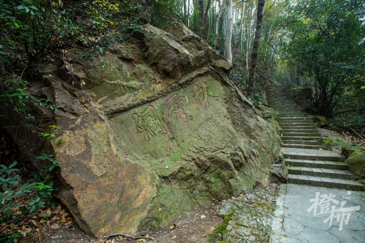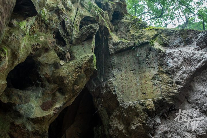 走在里面,好像进入了一方玲珑的洞天秘境。石壁交错出窄窄的甬道,沿着石阶向上,有时只能容一个人过去,转个身,又会遇到一个开阔的小平台,步步皆景,步步有趣。两旁还有许多摩崖石刻分布在大大小小的石头上。