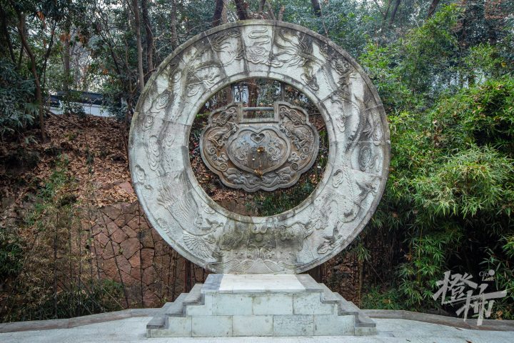 慧开禅师长期在黄龙洞山脚下的寺院“护国仁王禅寺”修行。这座禅院现在已不见踪迹,但它的遗址你可能见过,就在黄龙洞公交站边,黄龙洞地铁站C口旁有一块纪念石碑,斜上方穿过一根巨大的“尺八”,是中国古代的吹管乐器,护国仁王禅寺还被称为“尺八祖庭”。